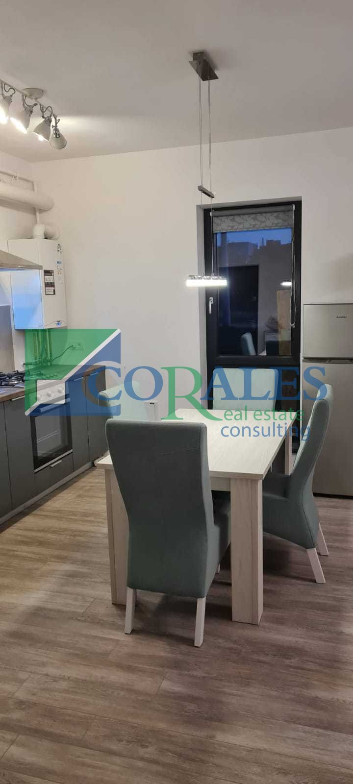 2 camere compartimentate astfel: bucatarie open space si zona de zi, hol, baie cu geam si dormitor; situat la parter, cu o suprafata utila de 52 mpu.
