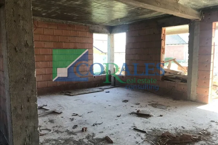 - etaj : hol acces, living cu bucatarie si loc de luat masa, 3 dormitoare, baie;