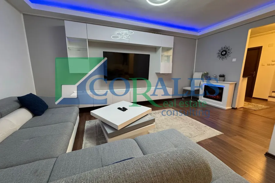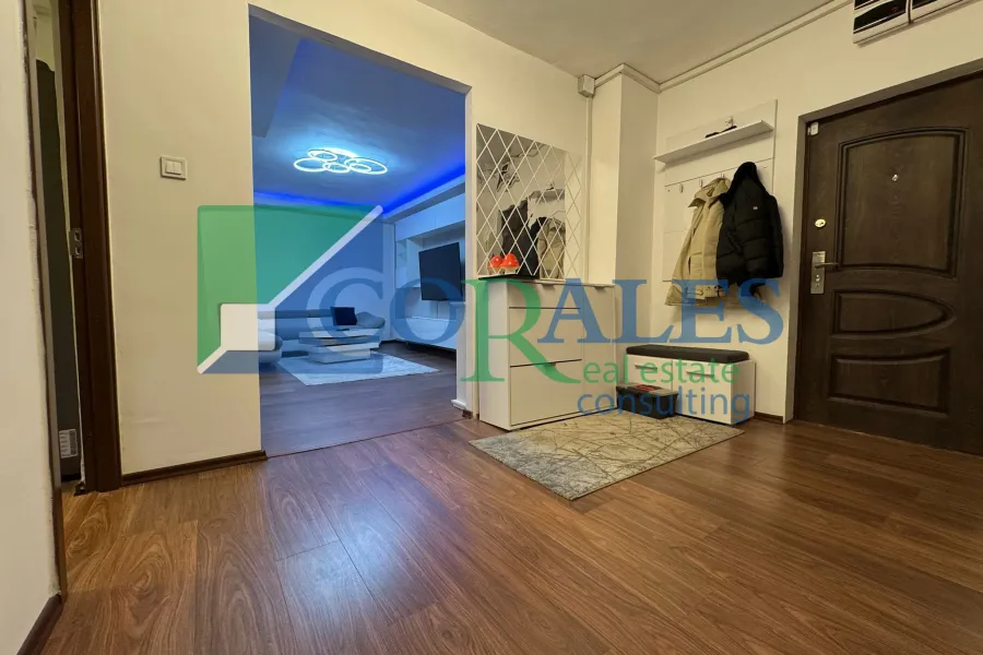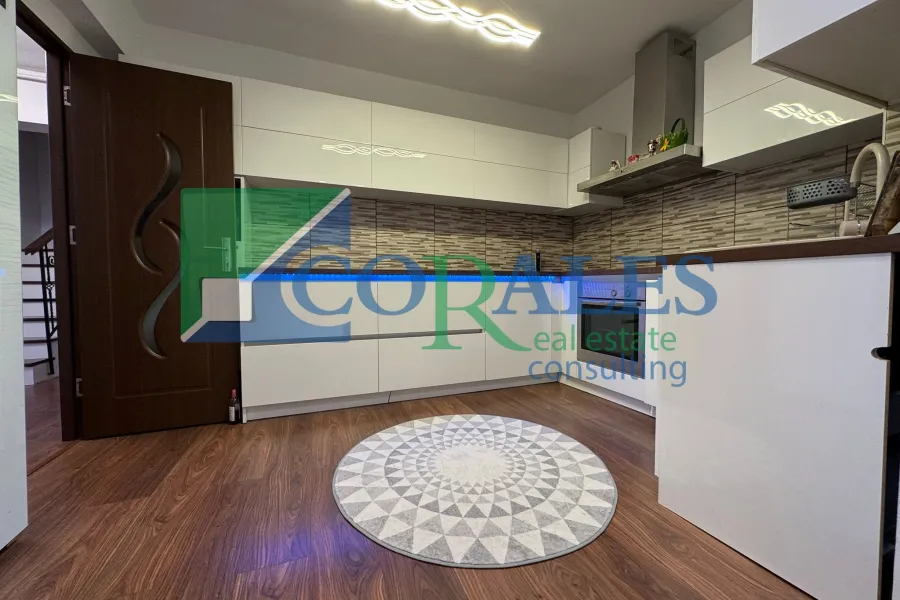 - detalii AMENAJARE interioara : parchet laminat, gresie, faianta, ferestre cu tamplarie PVC si geam termopan, usa metalica la intrare, usi interioare noi, vopsea lavabila, corpuri sanitare noi, calorifere schimbate, aer conditionat