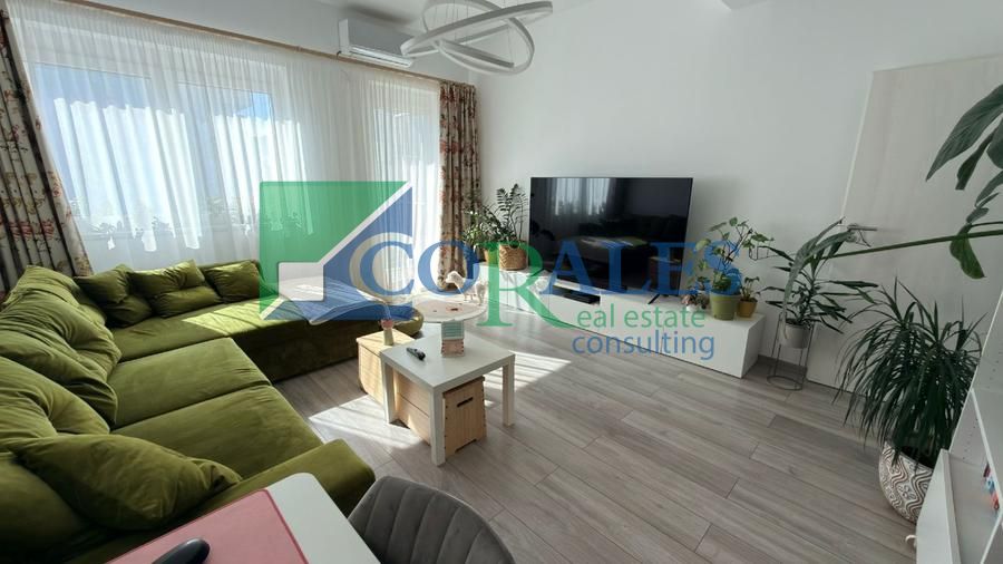- detalii AMENAJARE interioara : parchet laminat, gresie, faianta, ferestre cu tamplarie PVC si geam termopan, usa metalica la intrare, usi interioare, vopsea lavabila, corpuri sanitare, aer conditionat