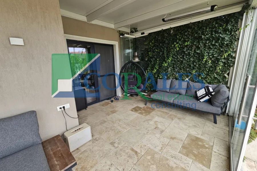 Gradina este COMPLET amenajata: plante decorative, sistem de irigatii automatizat, corpuri de iluminat exterioare, gril, terasa in suprafata de 20 mp acoperita, gazon. In spatele curtii exista o constructie pe structura usoara pentru depozitare, cu foraj si pompa pentru ingrijirea gradinii.