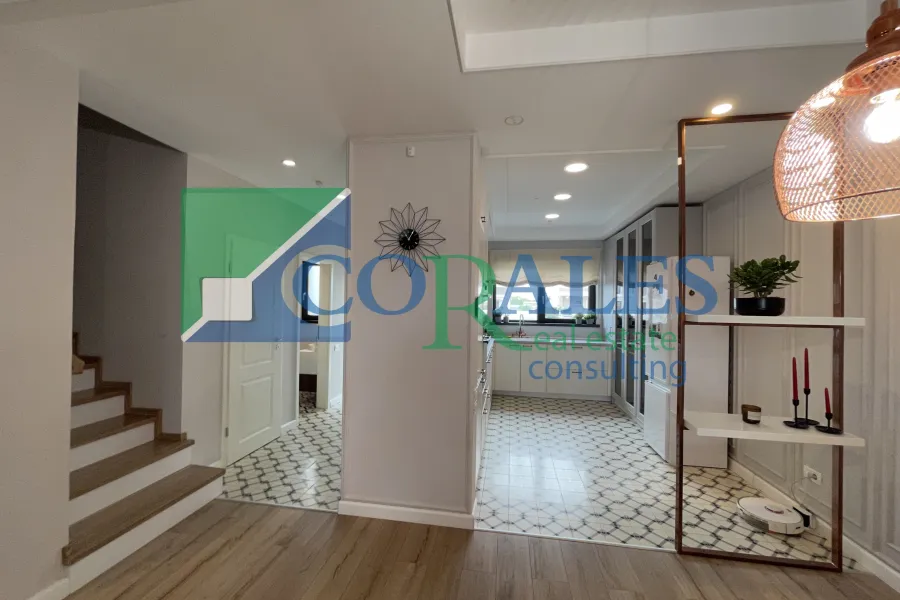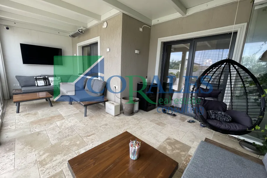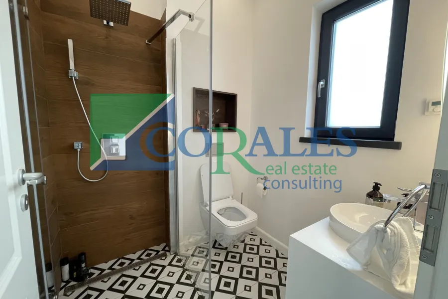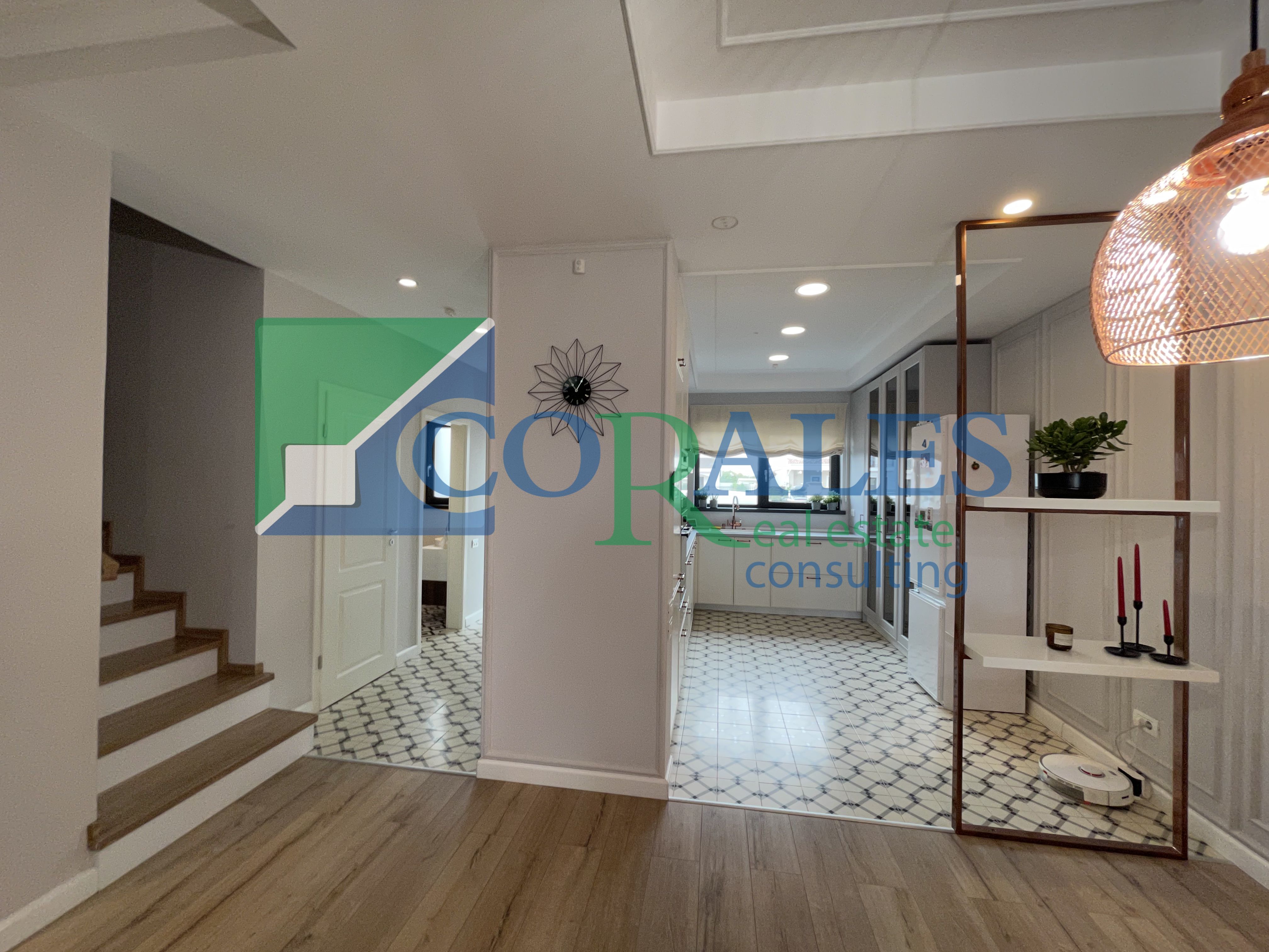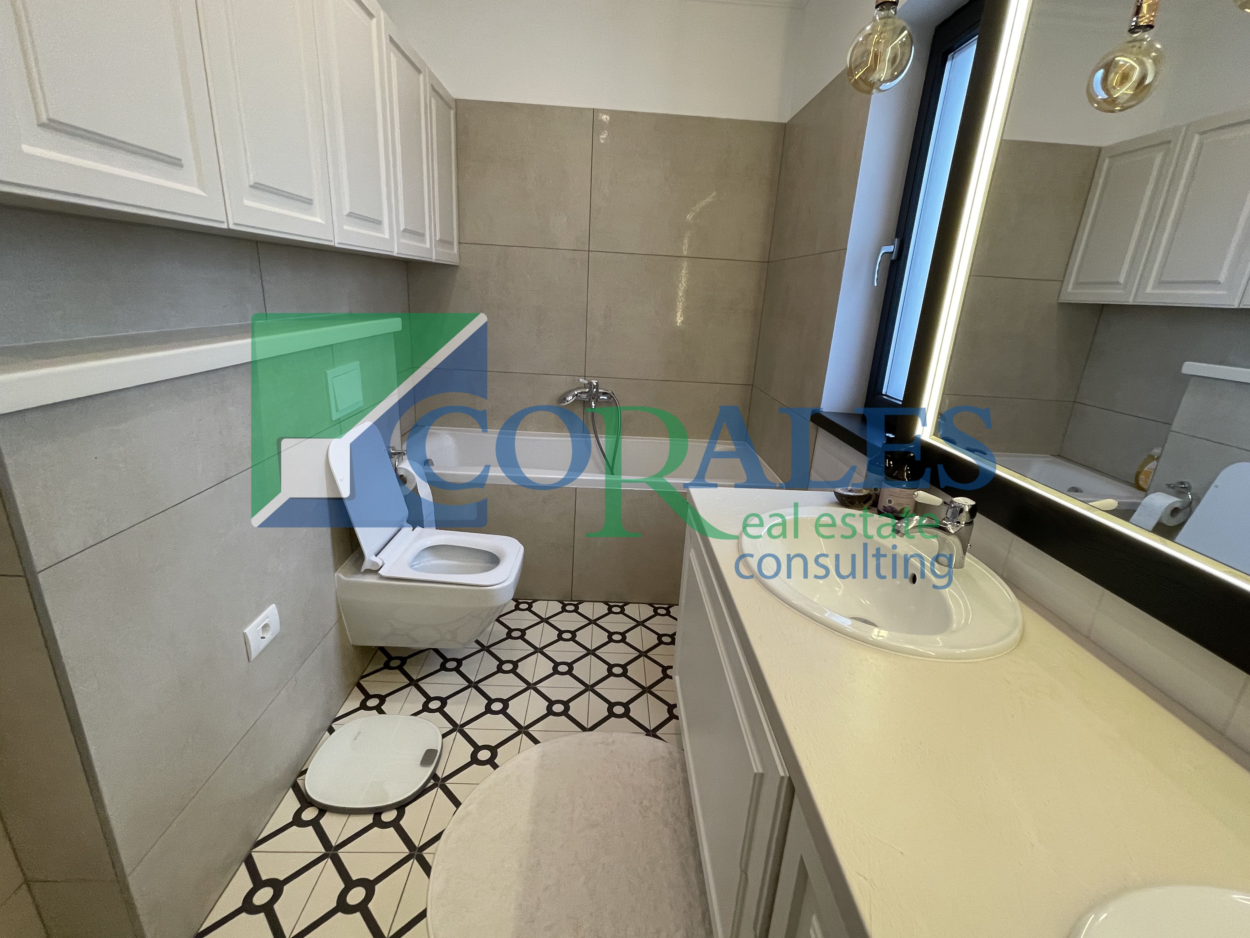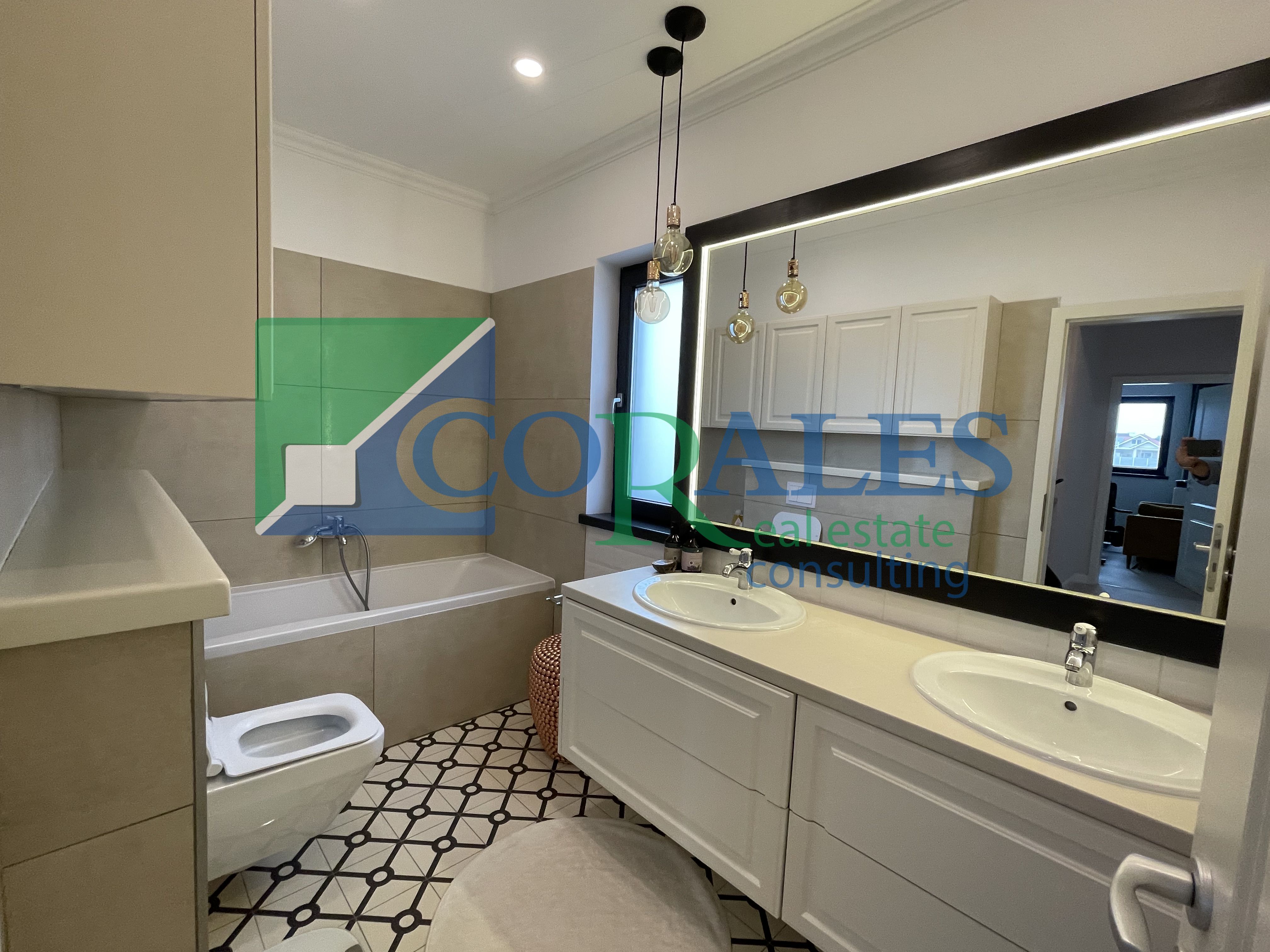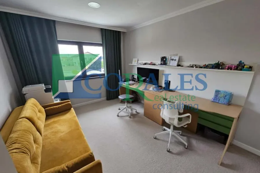 Detalii AMENAJARE interioara: parchet laminat, gresie, faianta, ferestre cu tamplarie PVC si geam termopan, usa PVC la intrare, usi interioare celulare, vopsea lavabila, corpuri sanitare, aparat de aer conditionat (24.000 BTU cu inverter)