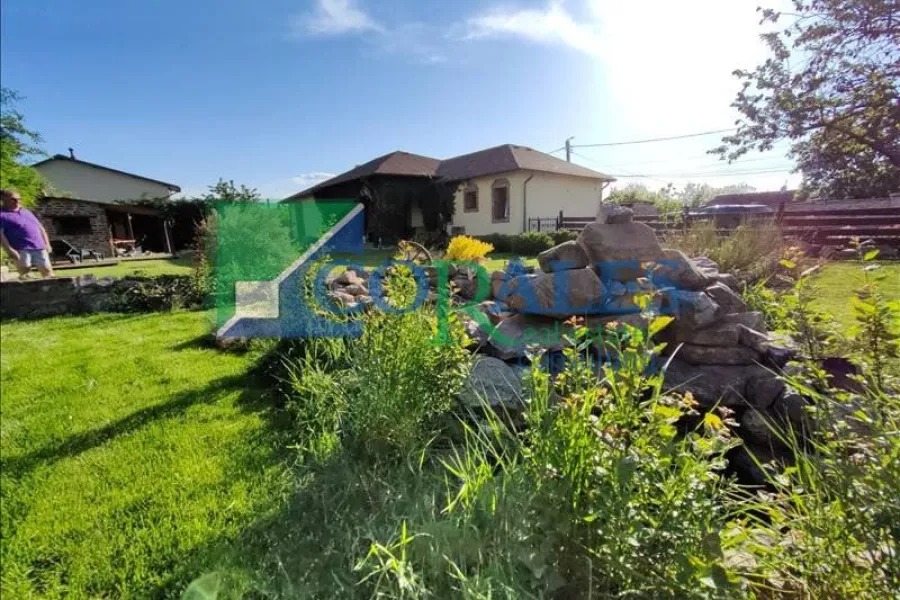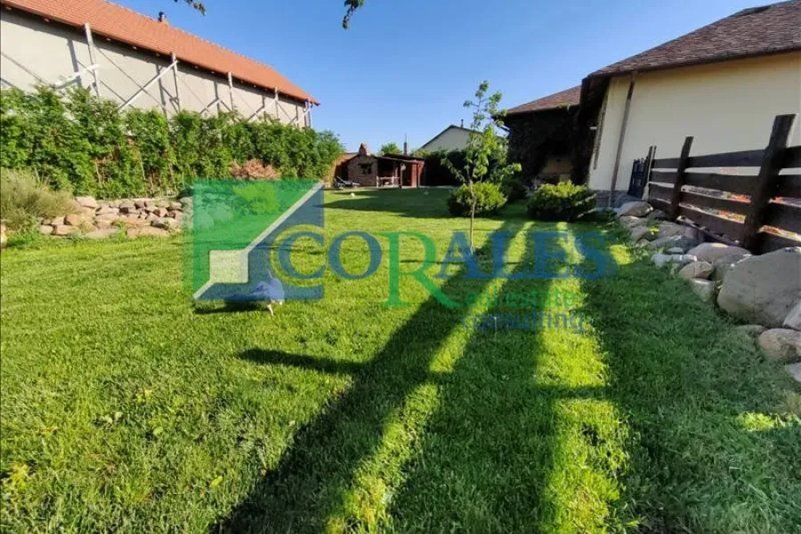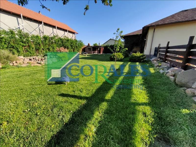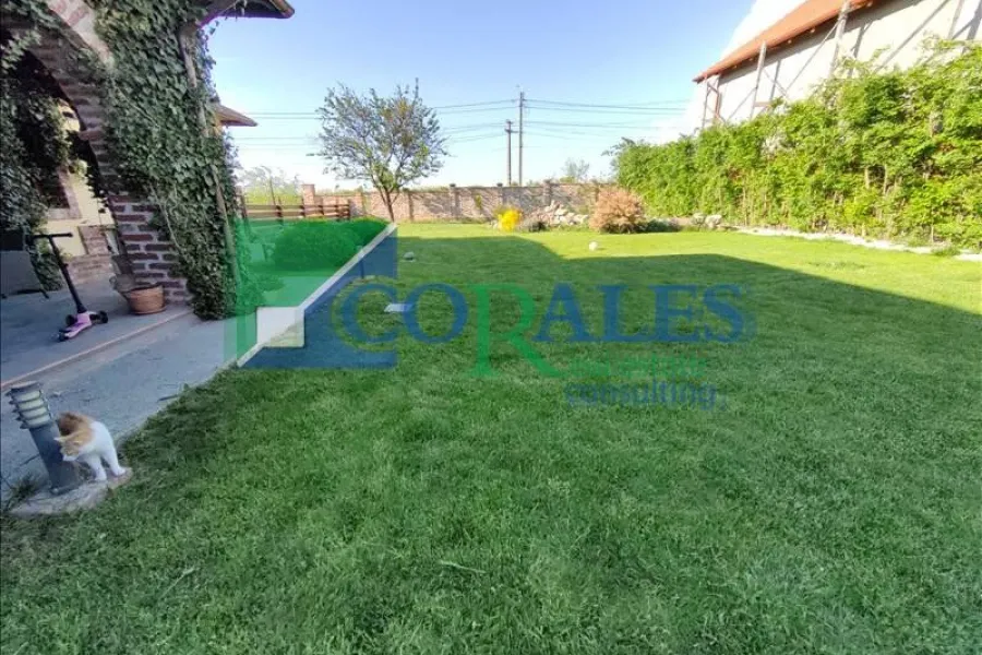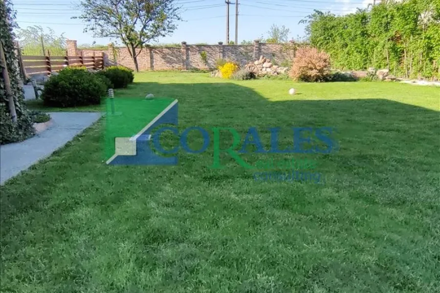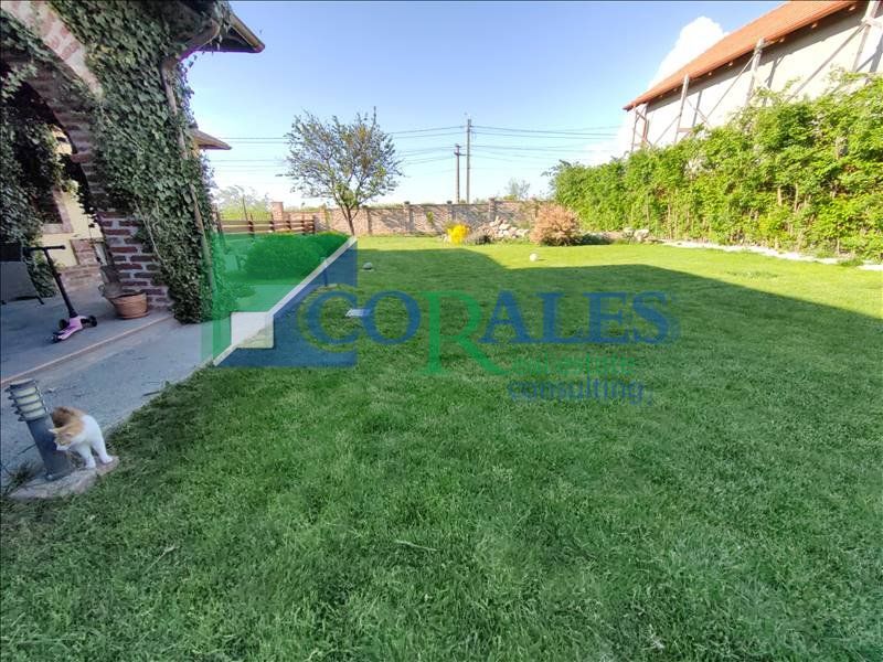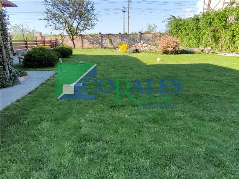 Gradina este COMPLET amenajata : plante decorative, sistem de irigatii automatizat, foraj, corpuri de iluminat exterioare, gril din caramida, terasa in suprafata de 30 mp acoperita, gazon. In spatele curtii exista casuta de depozitare, cu foraj si pompa pentru ingrijirea gradinii.