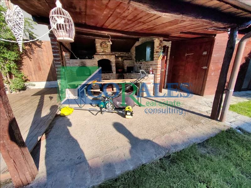 Terasa este spatioasa, facuta la comanda cu acoperis din tigla, gratar de piatra.