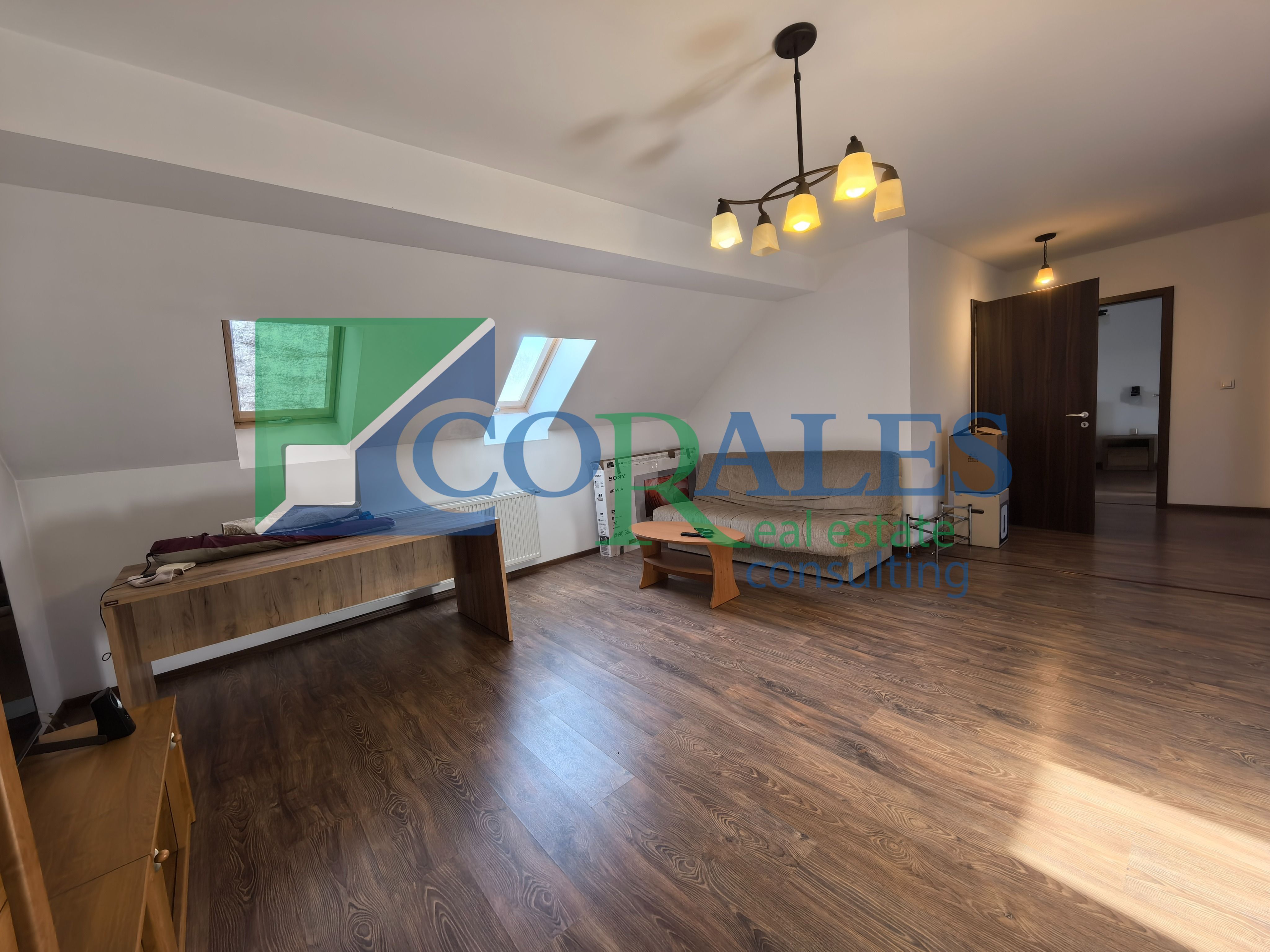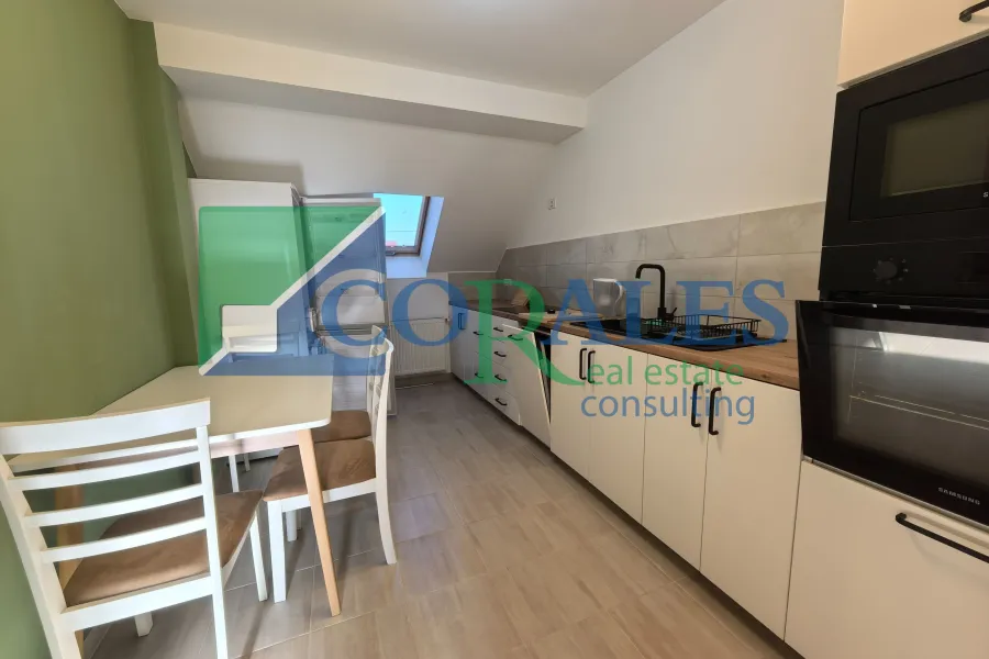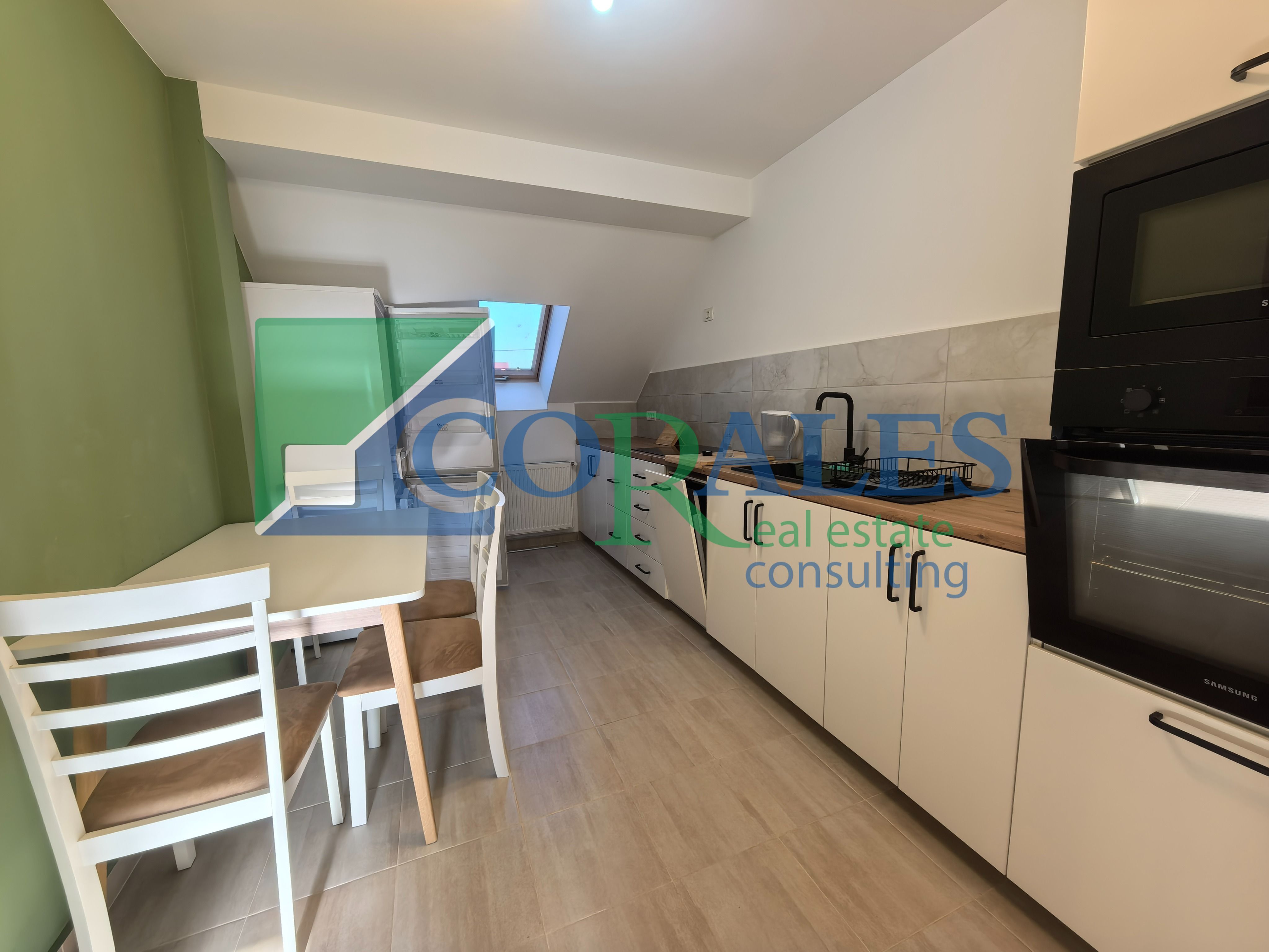 Amenajari si dotari: parchet laminat, gresie, faianta, tamplarie PVC cu geam termopan, usa intrare PVC, usi interioare noi, aer conditionat, centrala termica proprie, bucatarie complet mobilata si utilata (plita/aragaz, cuptor, hota, combina frigorifica, masa + scaune);