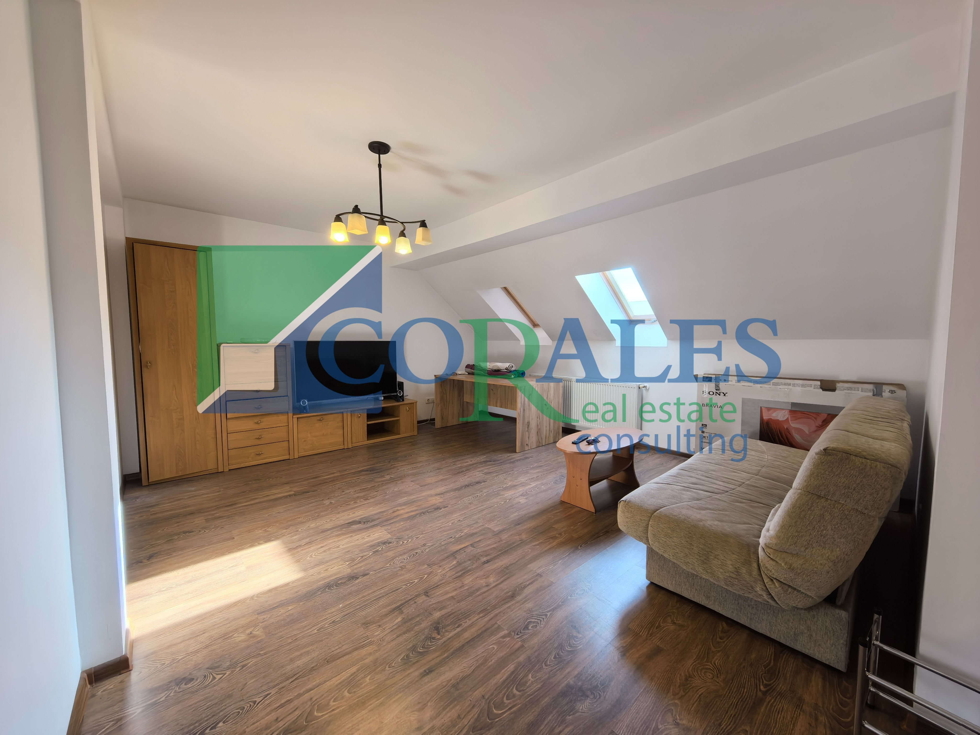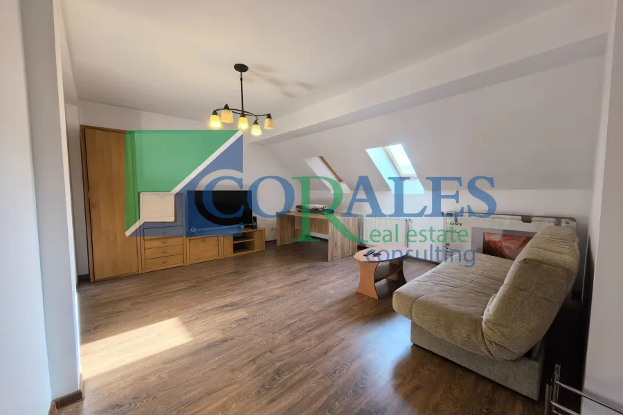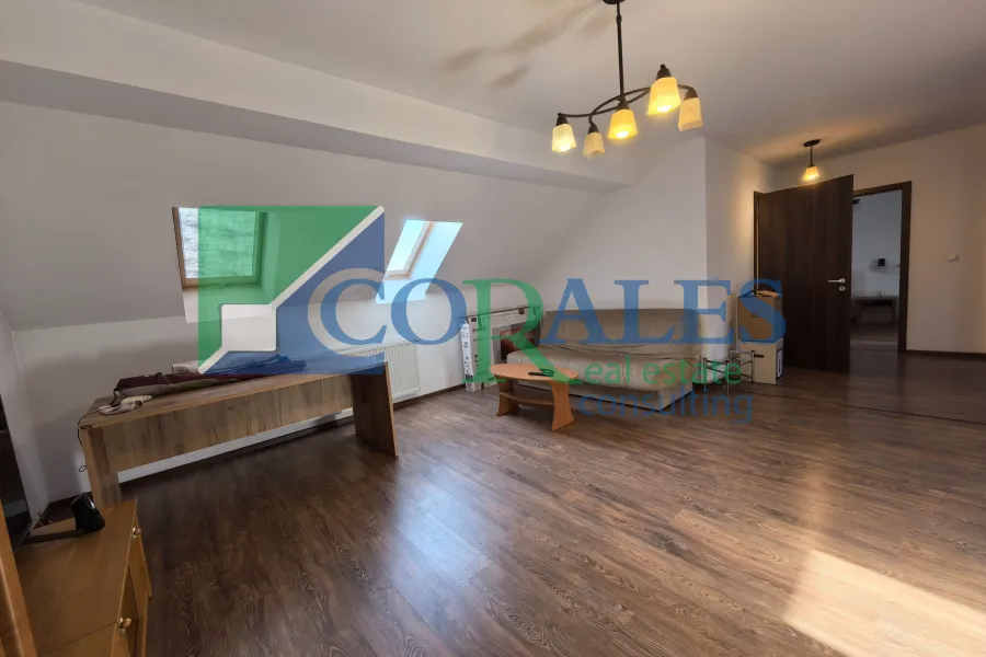 Mansarda: hol acces, bucatarie + loc de luat masa, living, 2 dormitoare, baie, spatiu depozitare, balcon;