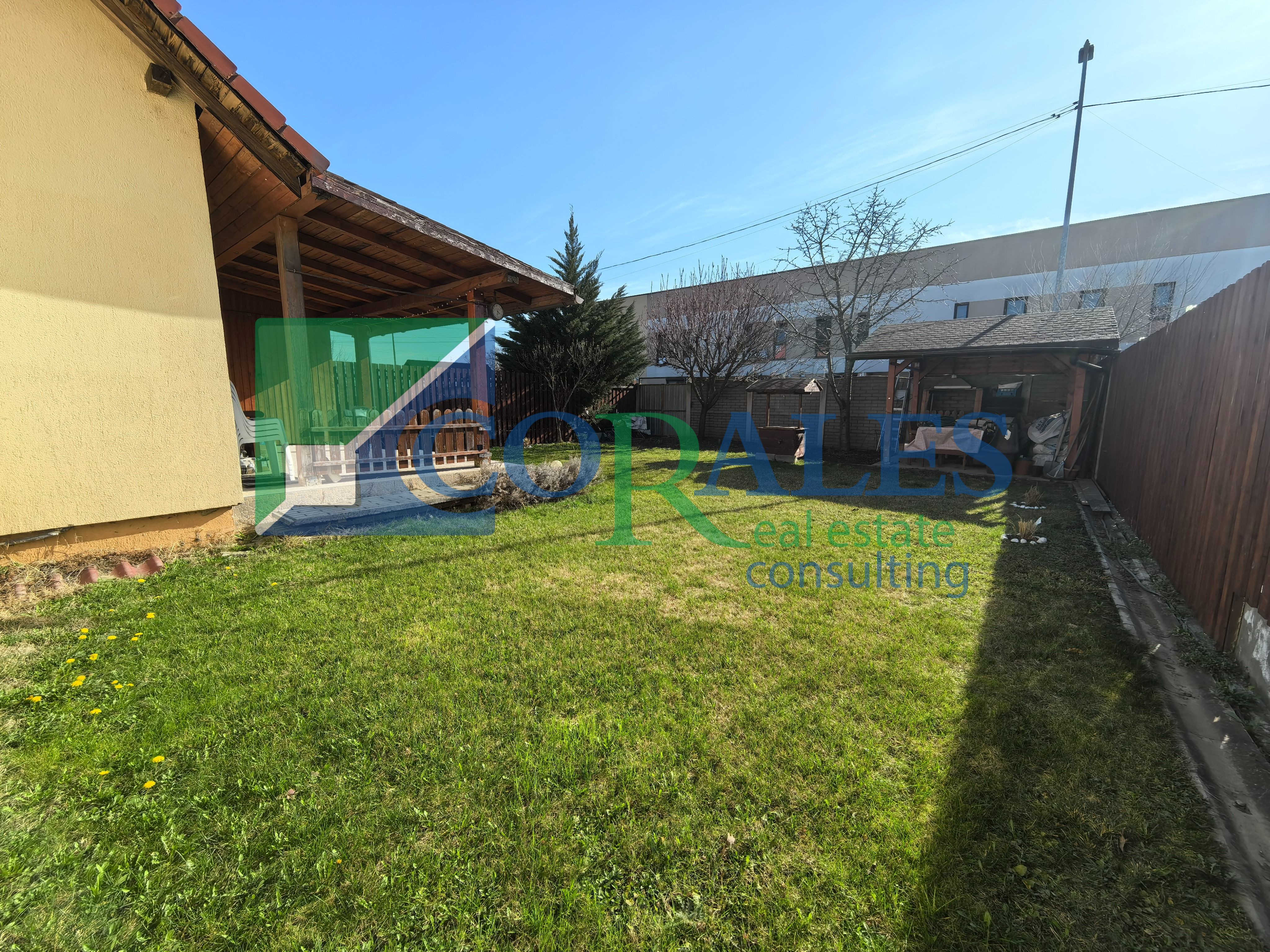 Exterior: gradina complet amenajata cu gazon si plante decorative, sistem de iluminat exterior, gratar din caramida, foraj + pompa pentru irigatii;