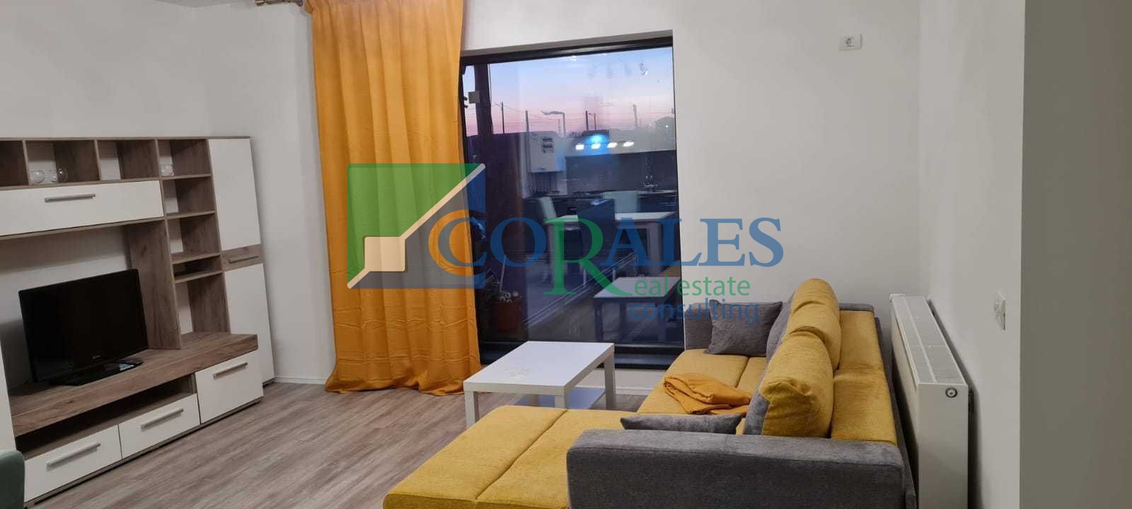 2 camere compartimentate astfel: bucatarie open space si zona de zi, hol, baie cu geam si dormitor; situat la parter, cu o suprafata utila de 52 mpu.