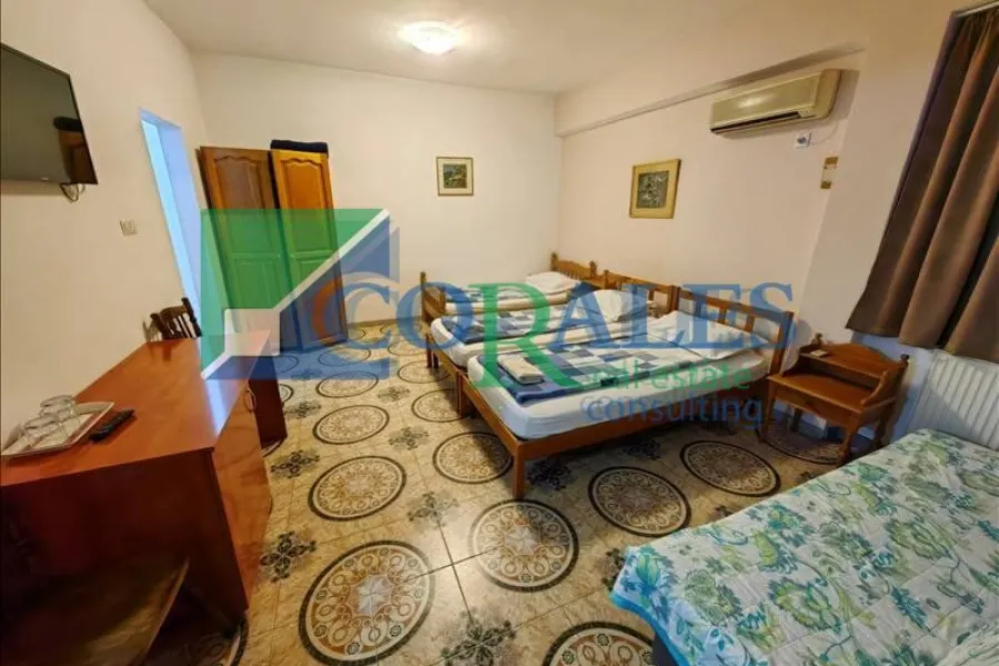 Parter : receptie, restaurant, loc de luat masa, 2 camere, bucatarie, bar, separe, magazie, spalatorie, camera tehnica 4 dormitoare, 4 bai, terasa, SU 277 mp;