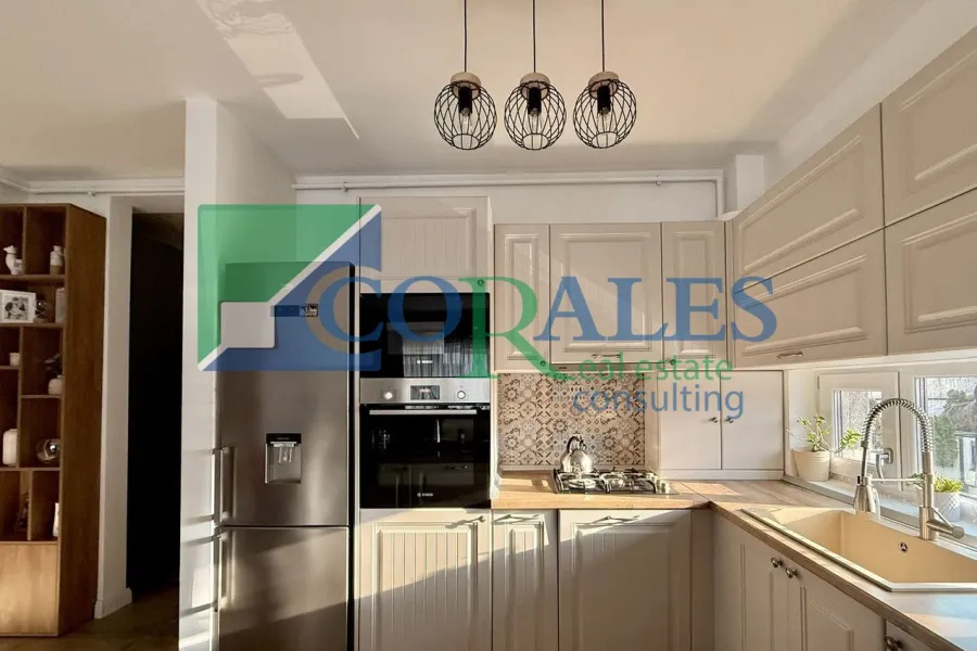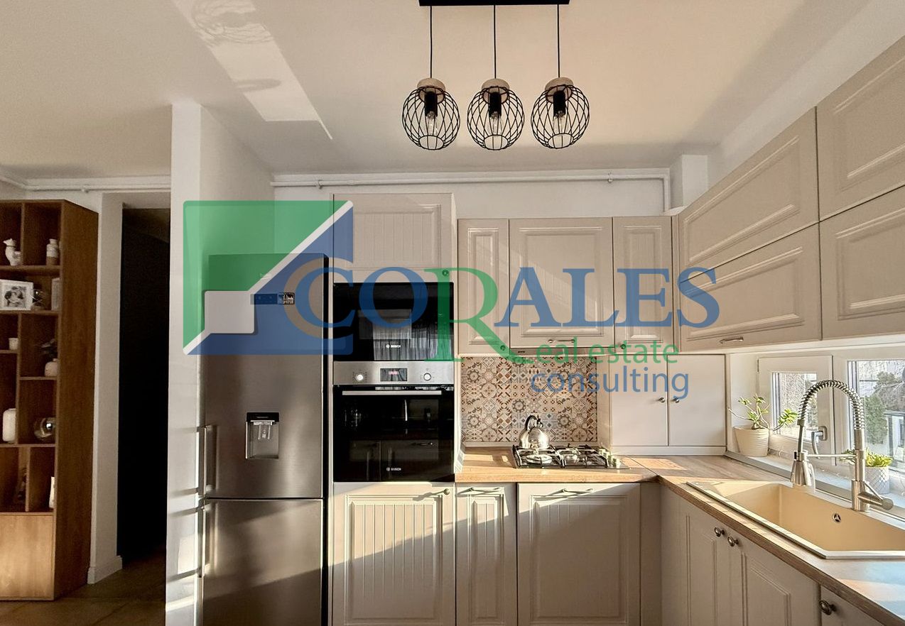 - parchet laminat, gresie, faianta, ferestre cu tamplarie PVC si geam tripan, usa metalica la intrare, usi interioare noi, vopsea lavabila, corpuri sanitare noi, calorifere schimbate, aer conditionat, rulouri electrice la dormitoare