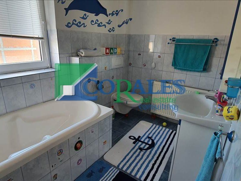 - detalii AMENAJARE interioara : parchet lemn masiv, gresie, faianta, ferestre cu tamplarie PVC si geam termopan, usa PVC la intrare, usi interioare noi, vopsea lavabila, corpuri sanitare noi, calorifere noi, aer conditionat.