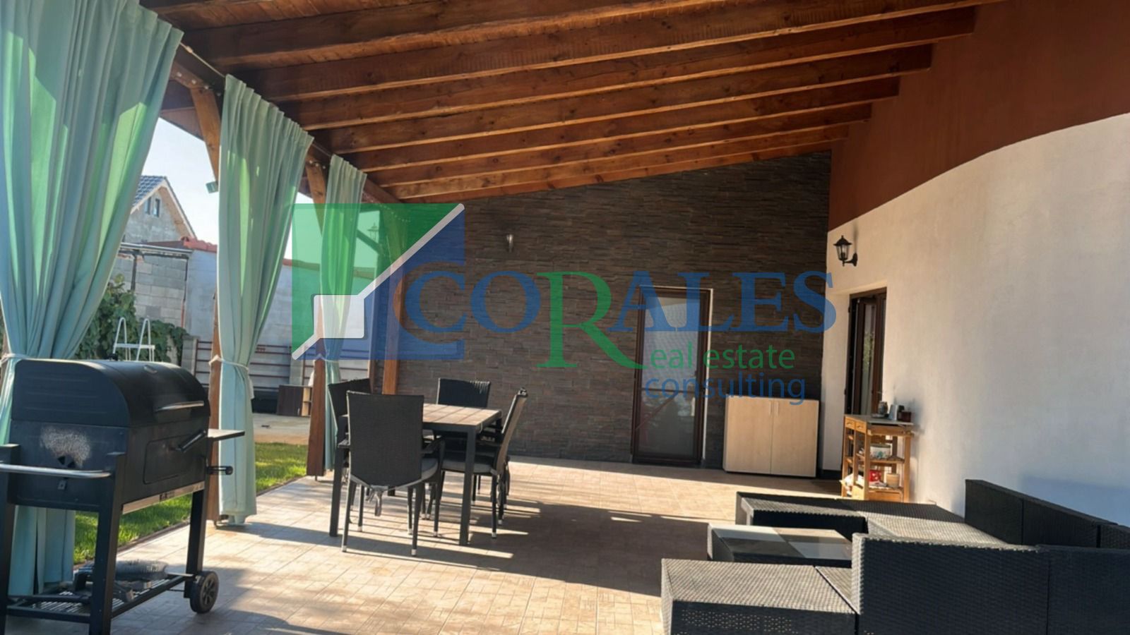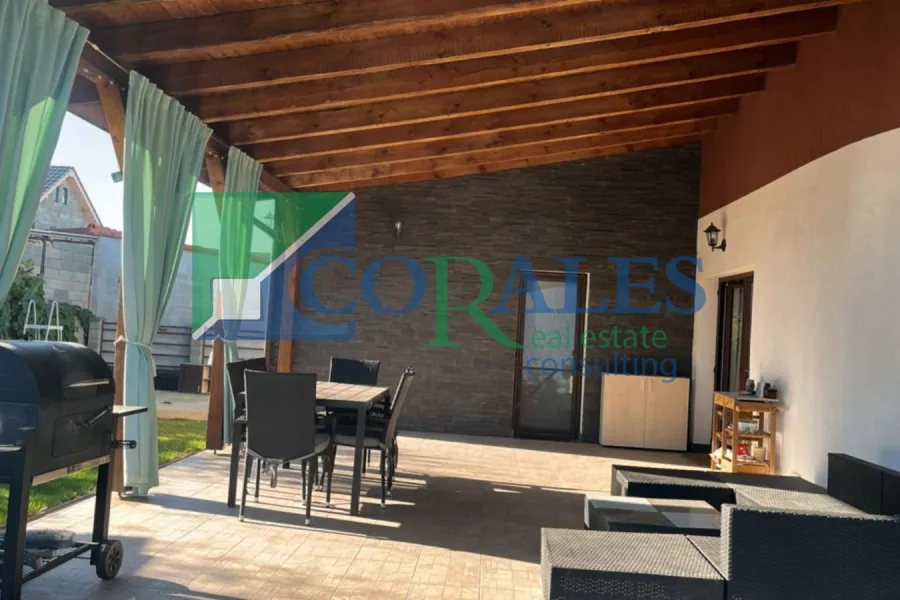 Gradina este amenajata : plante decorative, gazon. Sistem automatizat de irigare cu aspersoare In spatele curtii exista casuta de depozitare
