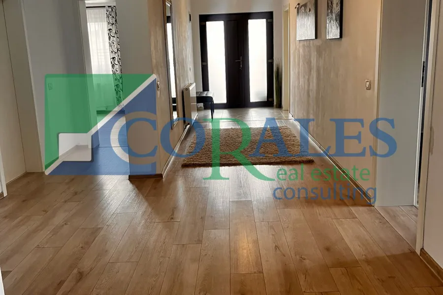 - detalii AMENAJARE interioara : parchet lamina, gresie, faianta, ferestre cu tamplarie PVC si geam termopan, usa metalica la intrare, usi interioare noi, vopsea lavabila, corpuri sanitare, calorifere, aer conditionat