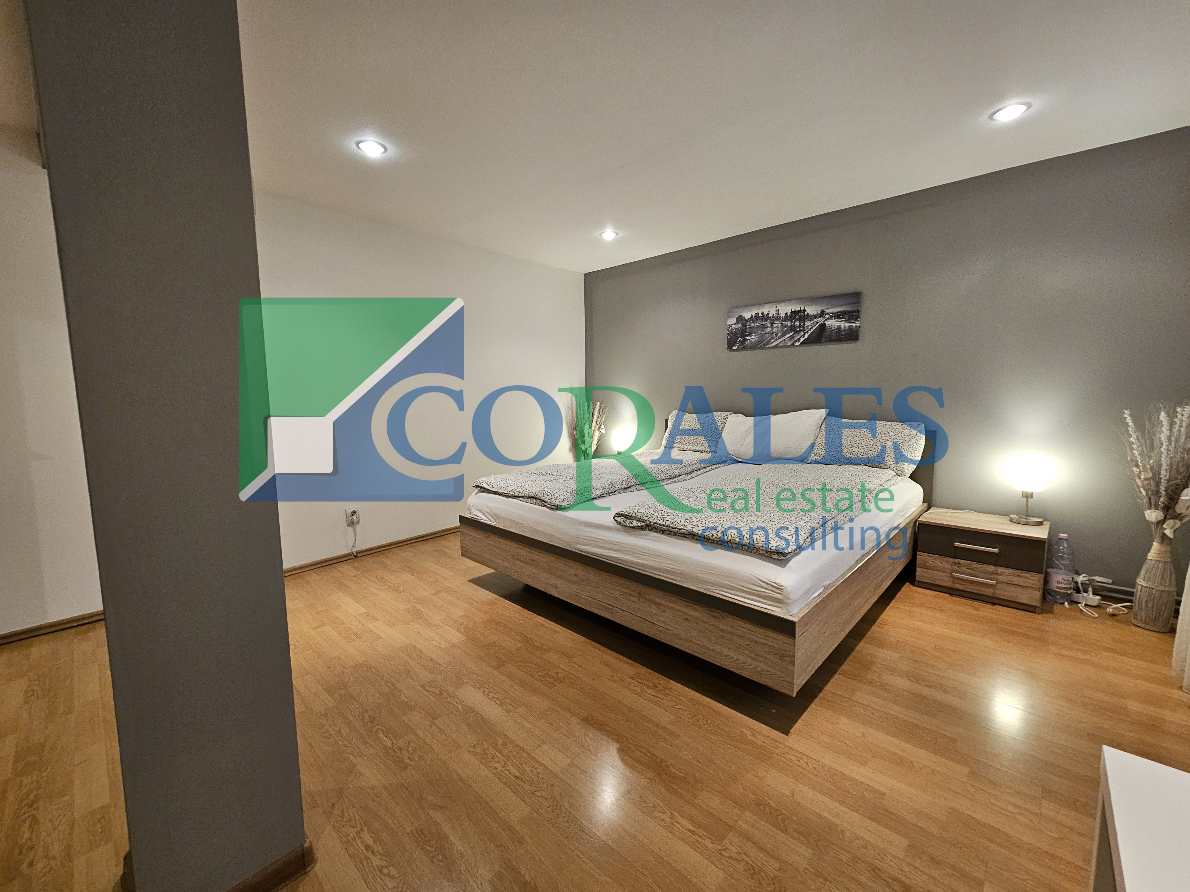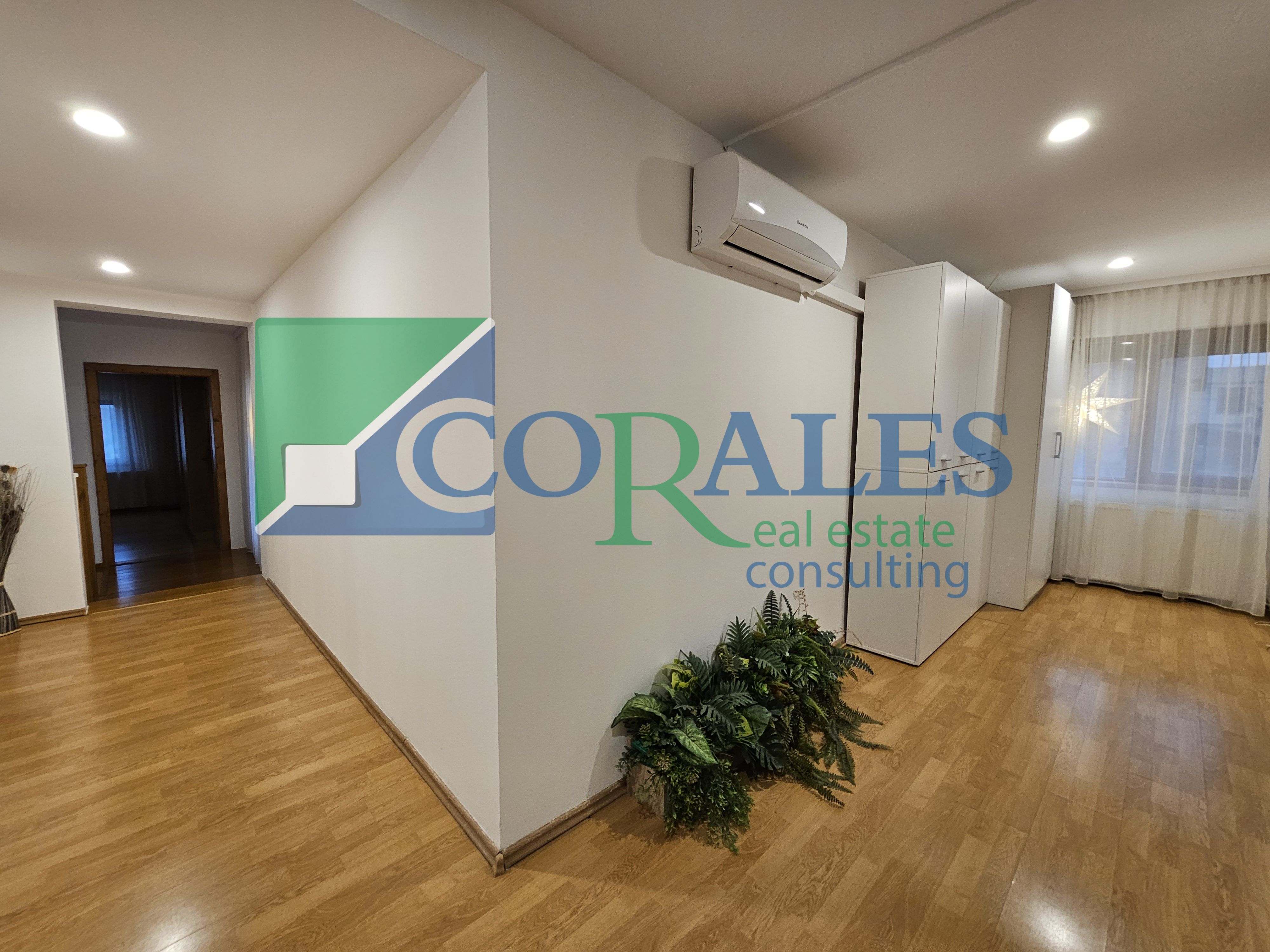 - detalii AMENAJARE interioara : parchet laminat, gresie, faianta, ferestre cu tamplarie PVC si geam termopan, usa metalica la intrare, usi interioare noi, vopsea lavabila, corpuri sanitarei, calorifere, aer conditionat
