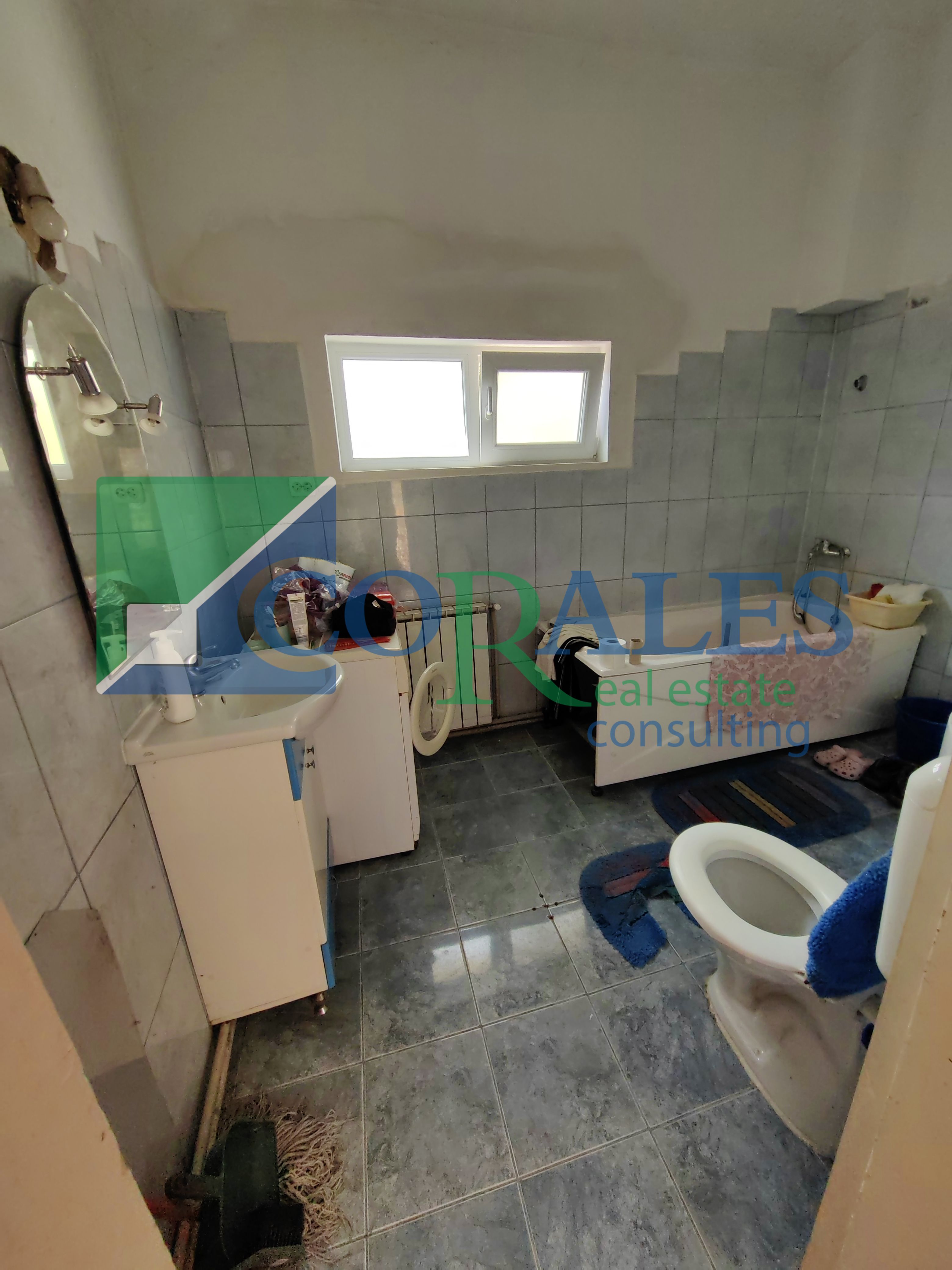 - detalii AMENAJARE interioara : parchet laminat, gresie, faianta, ferestre cu tamplarie PVC si geam termopan, usa lemn la intrare, usi interioare, vopsea lavabila, corpuri sanitare noi, calorifere.