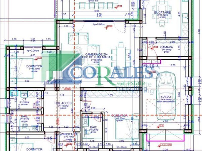 - detalii constructive : ziduri exterioare si interioare din caramida porotherm, termoizolata exterior, acoperis de tigla.