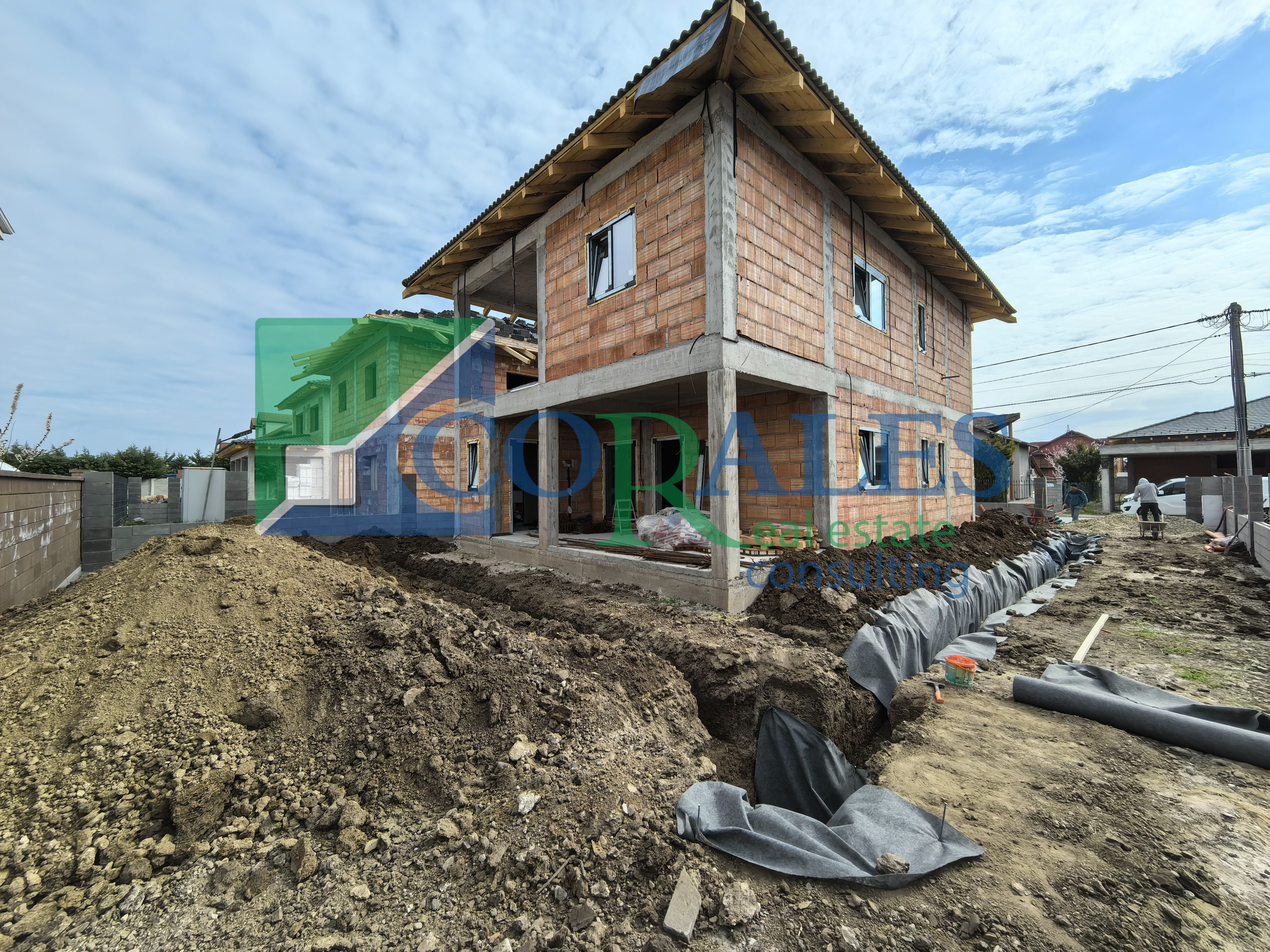 Detalii constructive: ziduri exterioare si interioare din caramida Porotherm de 30 cm, termoizolate exterior, acoperis din tigla izolat, placa de beton peste etaj, izolata;
