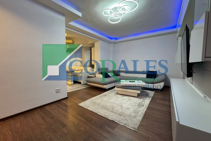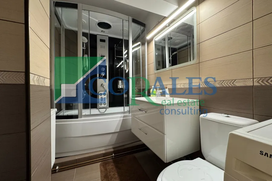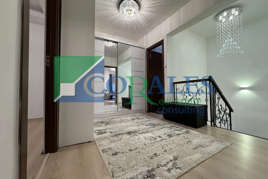 - detalii AMENAJARE interioara : parchet laminat, gresie, faianta, ferestre cu tamplarie PVC si geam termopan, usa metalica la intrare, usi interioare noi, vopsea lavabila, corpuri sanitare noi, calorifere schimbate, aer conditionat