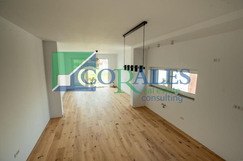 - detalii AMENAJARE interioara : parchet din stejar triplustratificat, gresie, faianta, ferestre cu tamplarie PVC si geam tripan, usa PVC la intrare, usi interioare noi, vopsea lavabila, corpuri sanitare noi, corpuri de iluminat