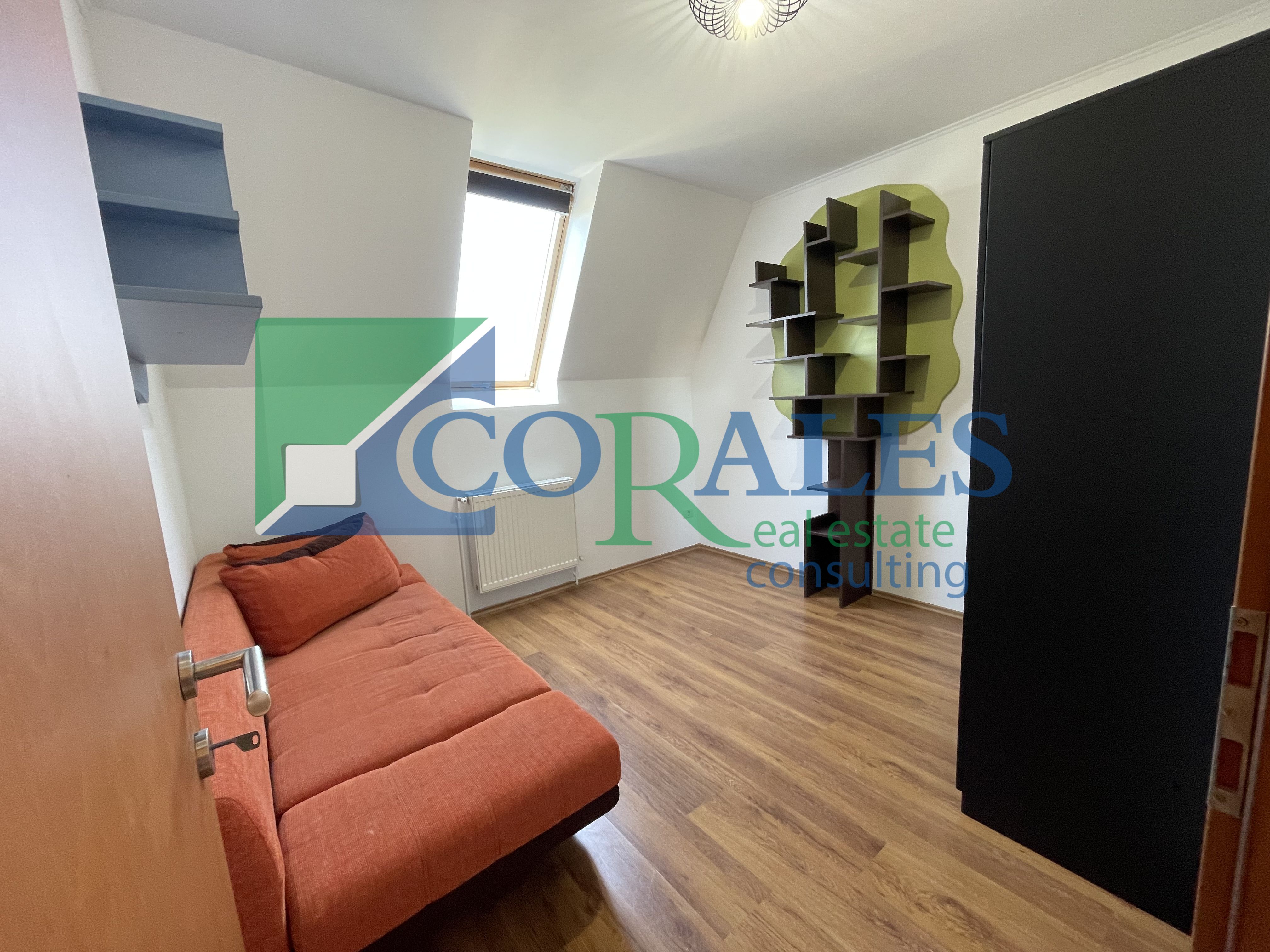Apartament cu 3 camere, situat in bloc izolat termic exterior, la Mansarda, 4 apartamente pe nivel, model cu vedere spre apus, parchet laminat, gresie, faianta, ferestre cu tamplarie PVC si geam termopan, usa metalica la intrare, usi interioare celulare, vopsea lavabila, aer conditionat, CENTRALA termica PROPRIE cu instalatie termica si sanitara functionale.