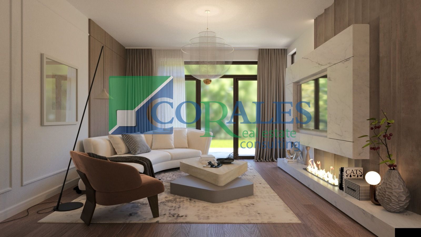 Gradina: Livrata complet amenajata cu gazon, plante decorative si sistem de irigatii automatizat (alimentat prin foraj propriu).
