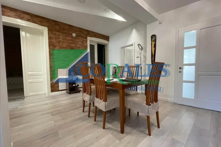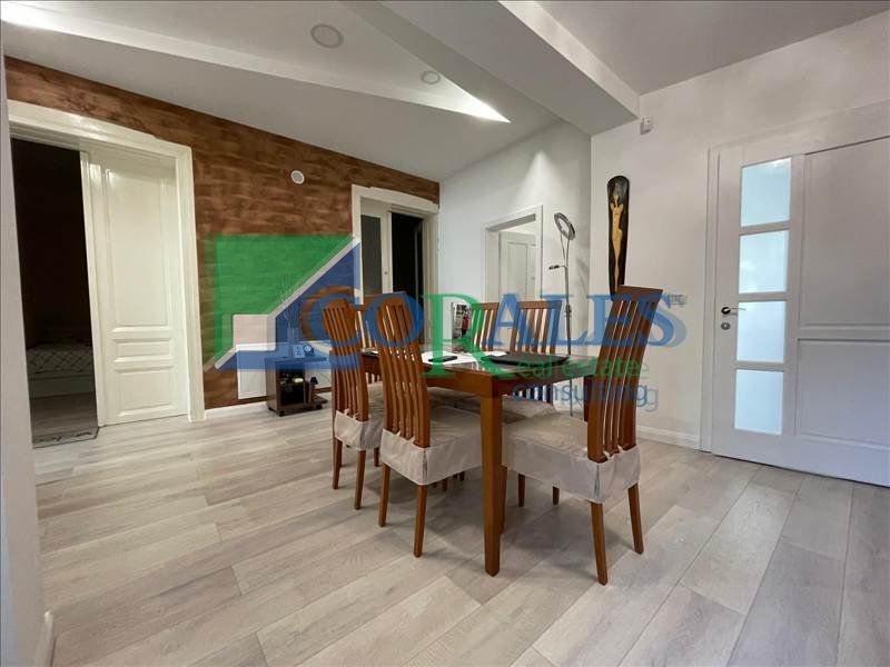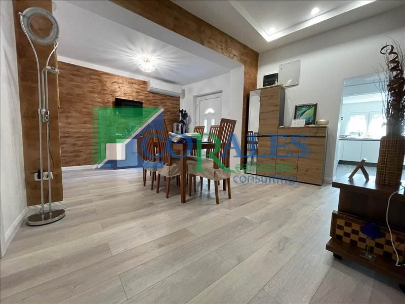 - detalii AMENAJARE interioara : parchet laminat, gresie, faianta, ferestre cu tamplarie PVC si geam termopan cu rulouri PVC, usa PVC la intrare, usi interioare noi si usi din lemn masiv reconditionate, vopsea lavabila, corpuri sanitare noi, calorifere noi, 2 aparate de aer conditionat, sistem de alarma si de supraveghere video, instalatia electrica este schimbata.