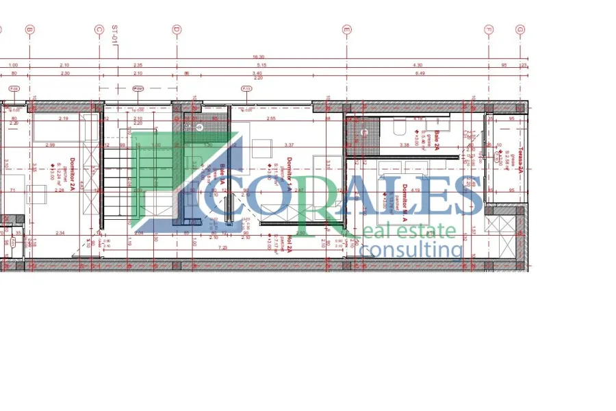 etaj : hol acces, 3 dormitoare, 2 bai;