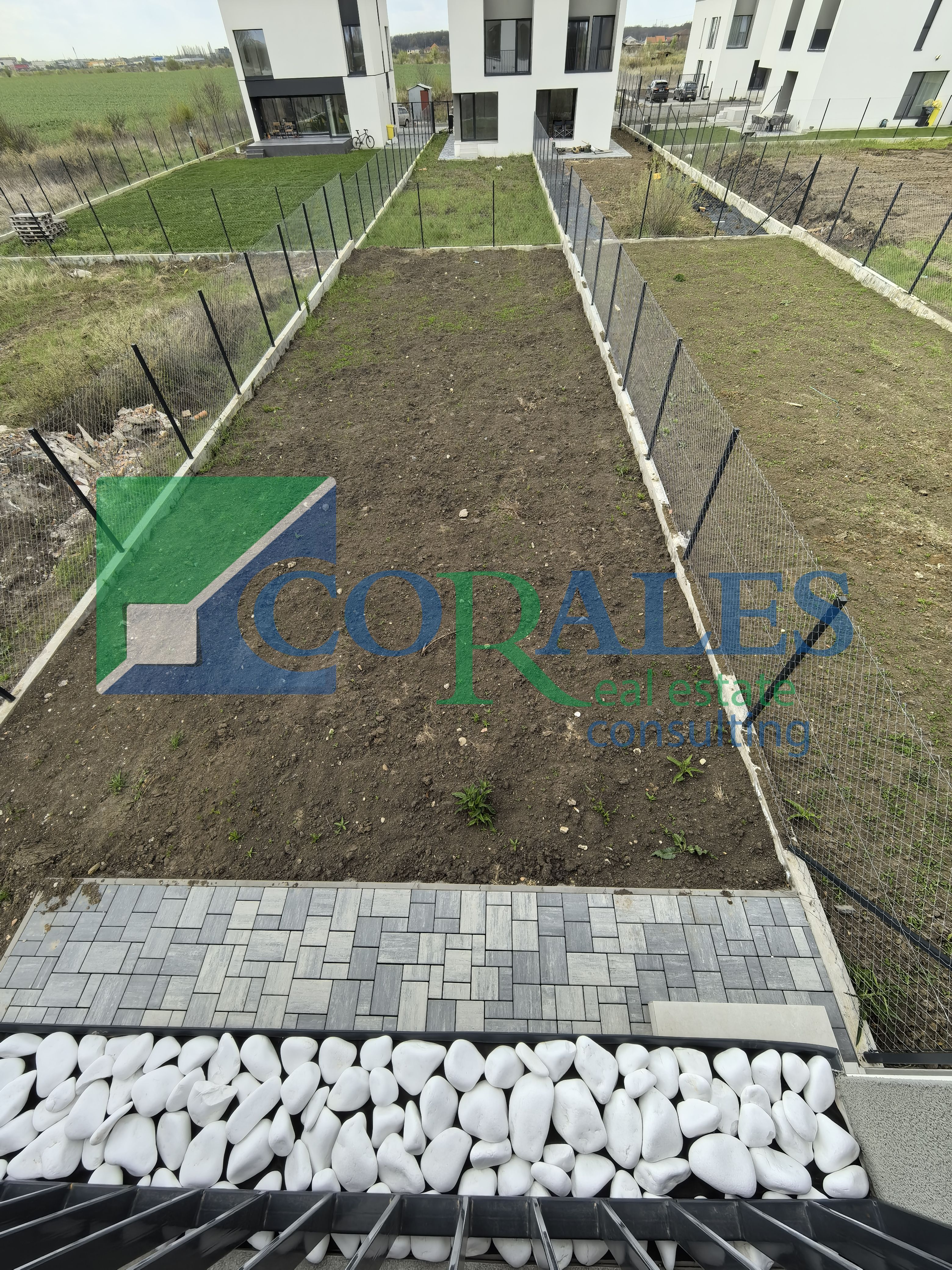 Gradina este COMPLET amenajata : plante decorative, sistem de irigatii automatizat, foraj, corpuri de iluminat exterioare, gazon.