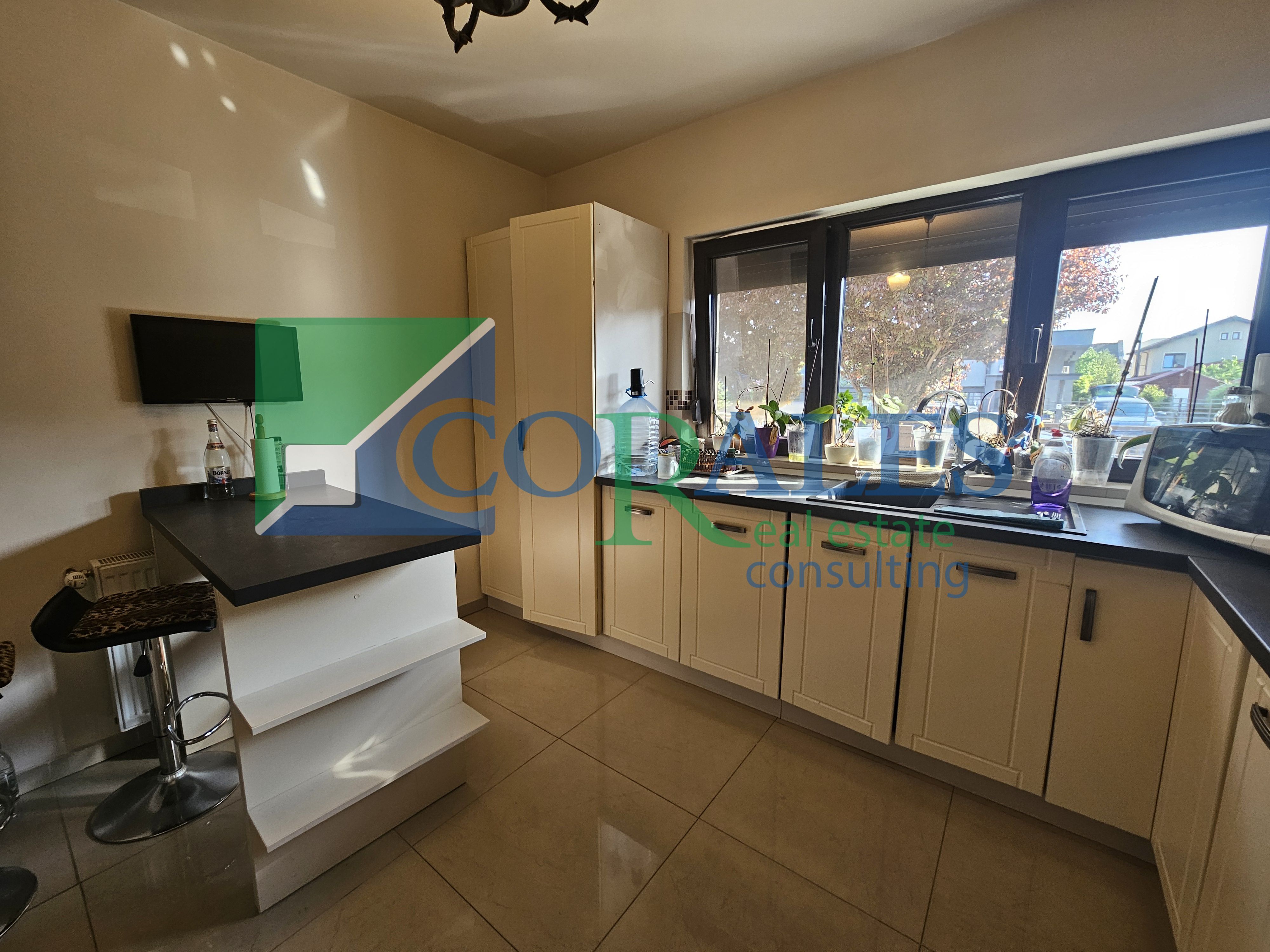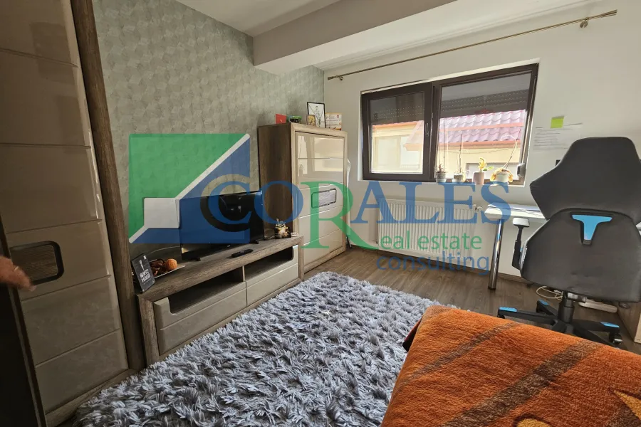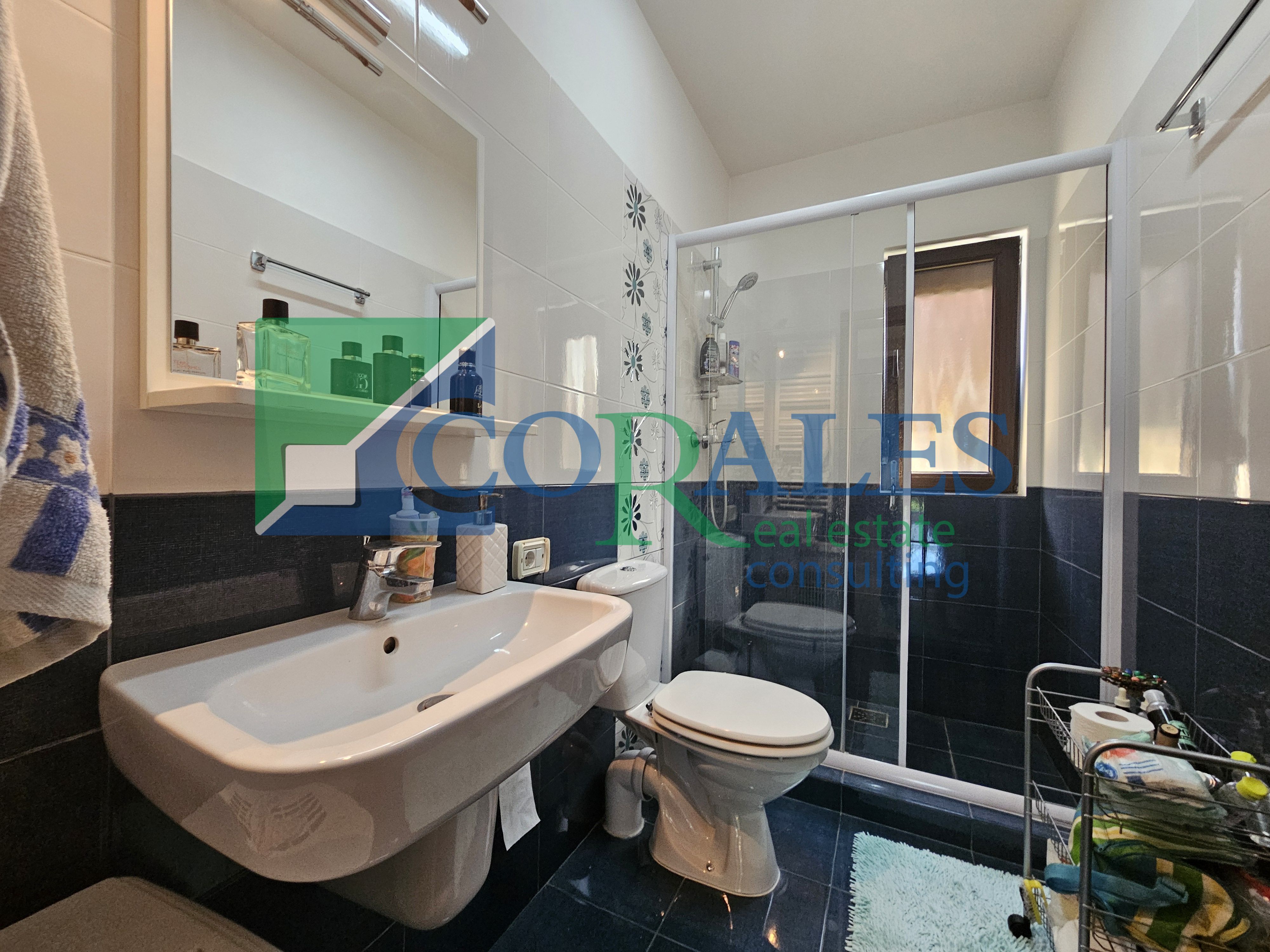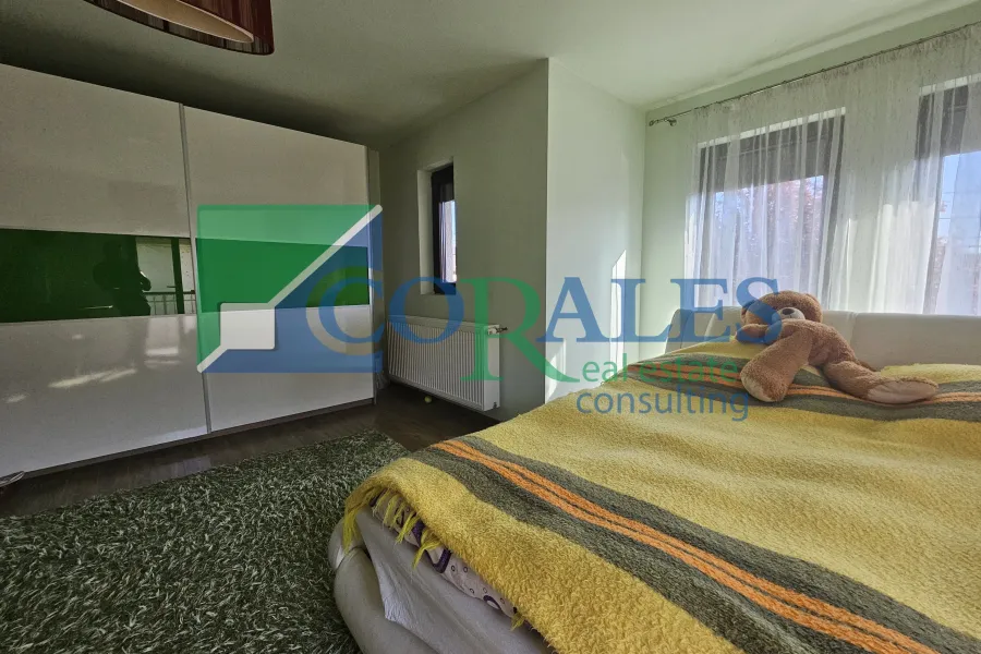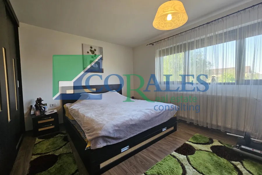 - detalii AMENAJARE interioara : parchet laminat, gresie, faianta, ferestre cu tamplarie PVC si geam termopan, usa metalica la intrare, usi interioare, vopsea lavabila, corpuri sanitarei, calorifere, aer conditionat