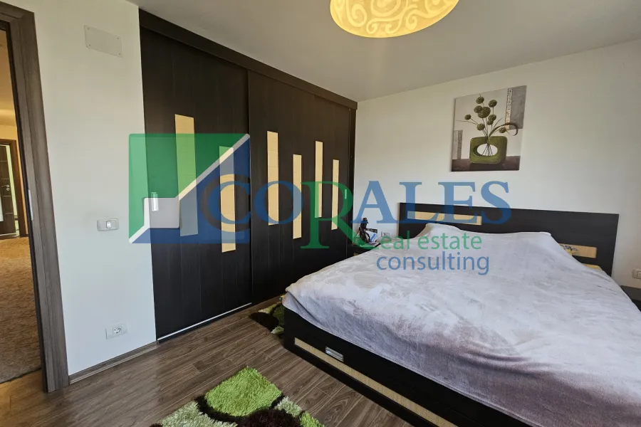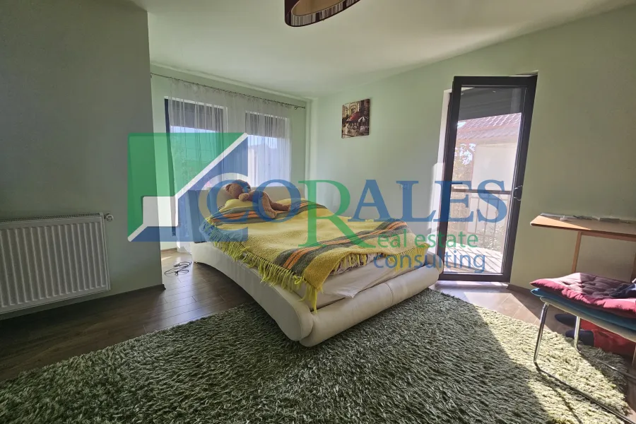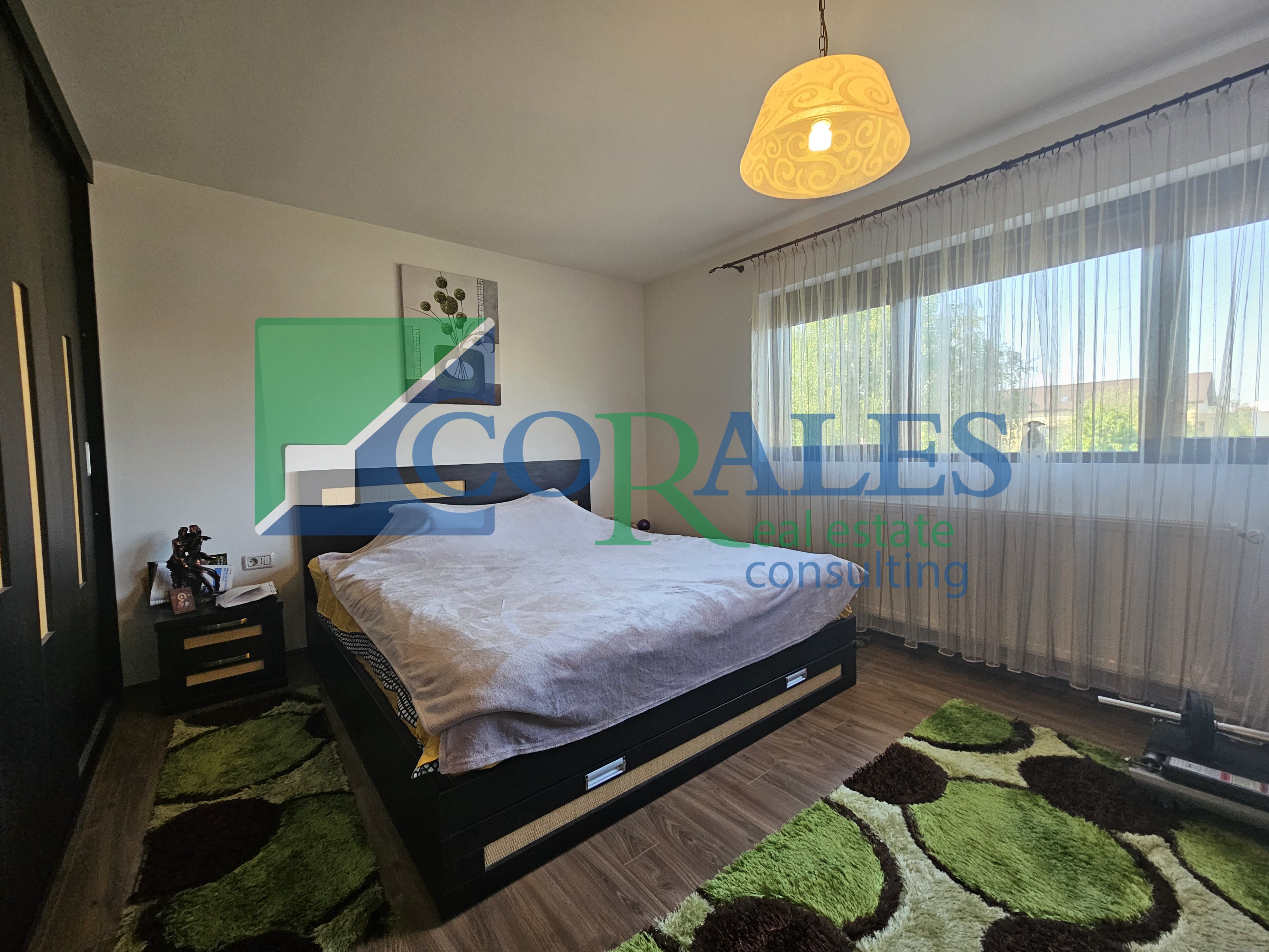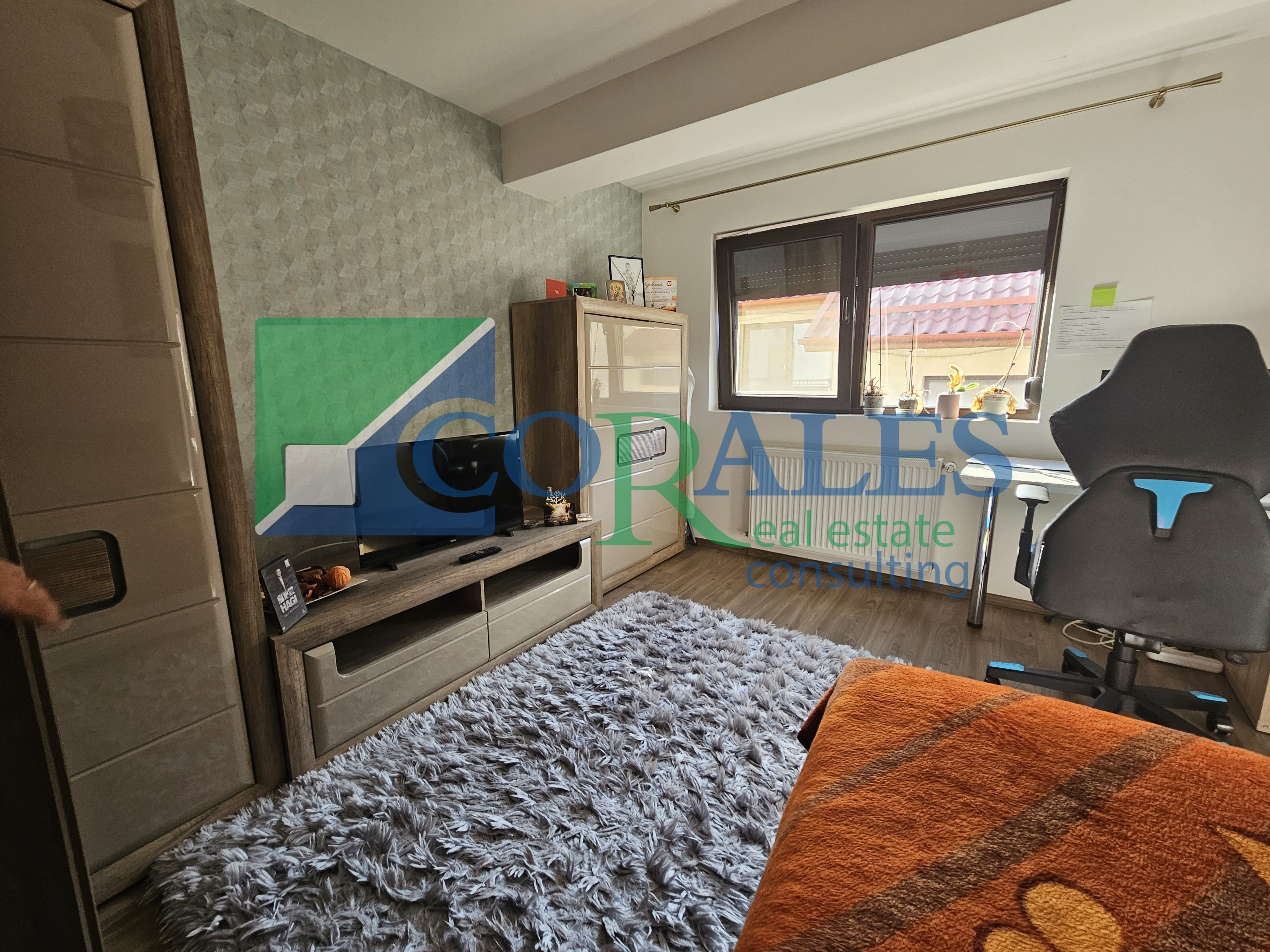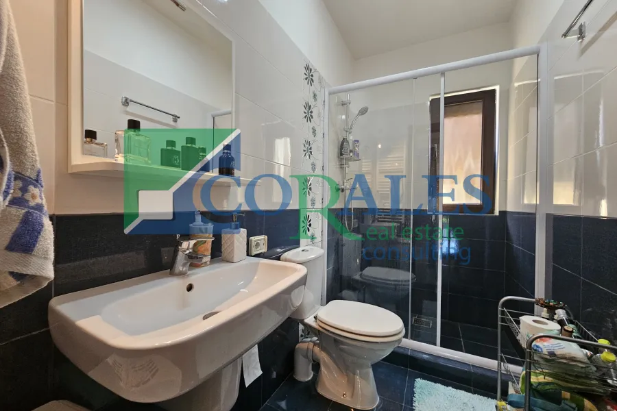 - detalii AMENAJARE interioara : parchet laminat, gresie, faianta, ferestre cu tamplarie PVC si geam termopan, usa metalica la intrare, usi interioare, vopsea lavabila, corpuri sanitarei, calorifere, aer conditionat