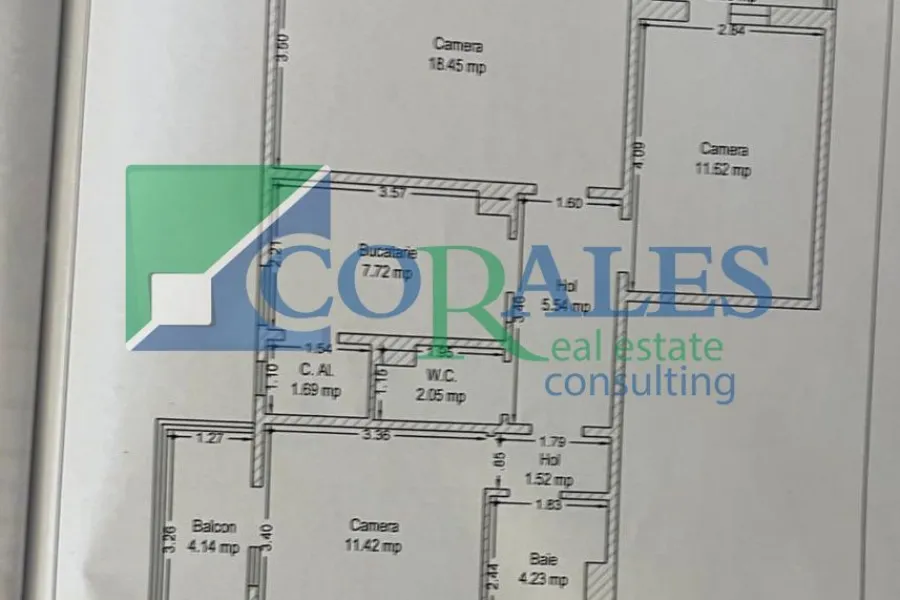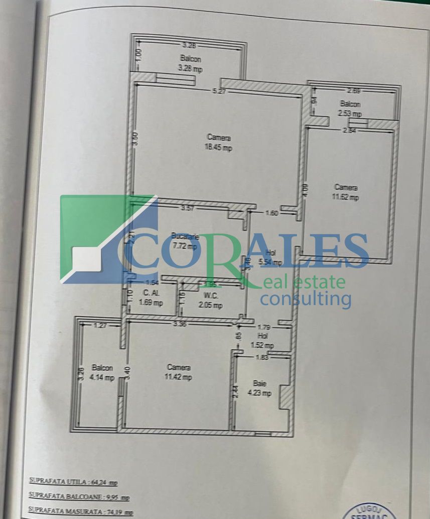 Apartamentul se afla la etajul 2, cu o suprafata utila de 65 mp utili + 3 balcoane (atasat schita), 2 ap pe NIVEL;